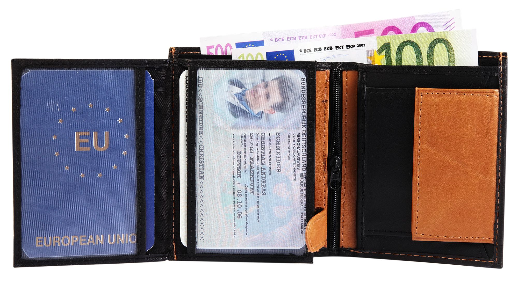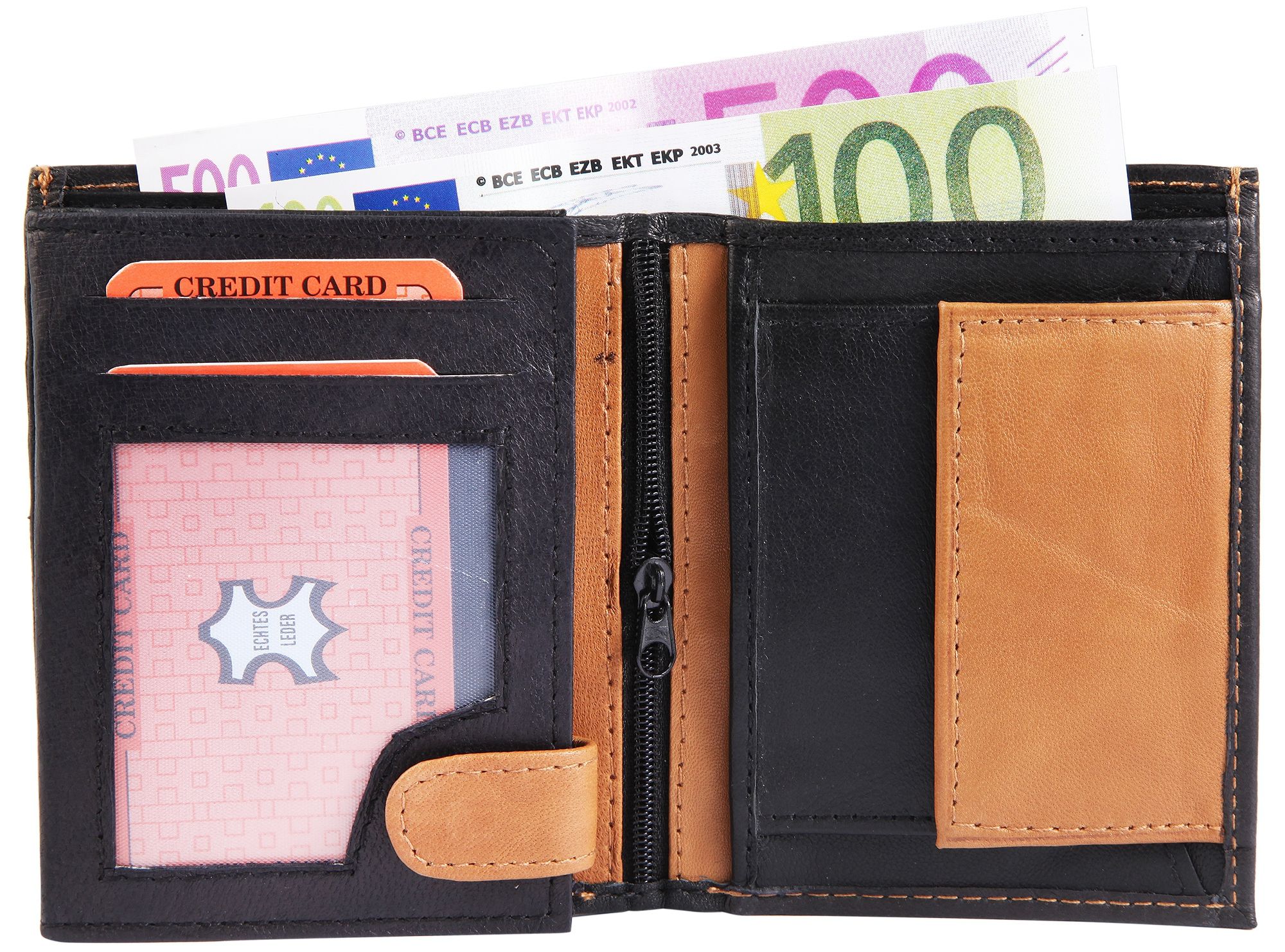 Produktinformationen "Steinmeister Herrengeldbörse aus Echtleder, Hochformat, schwarz/hellbraun"