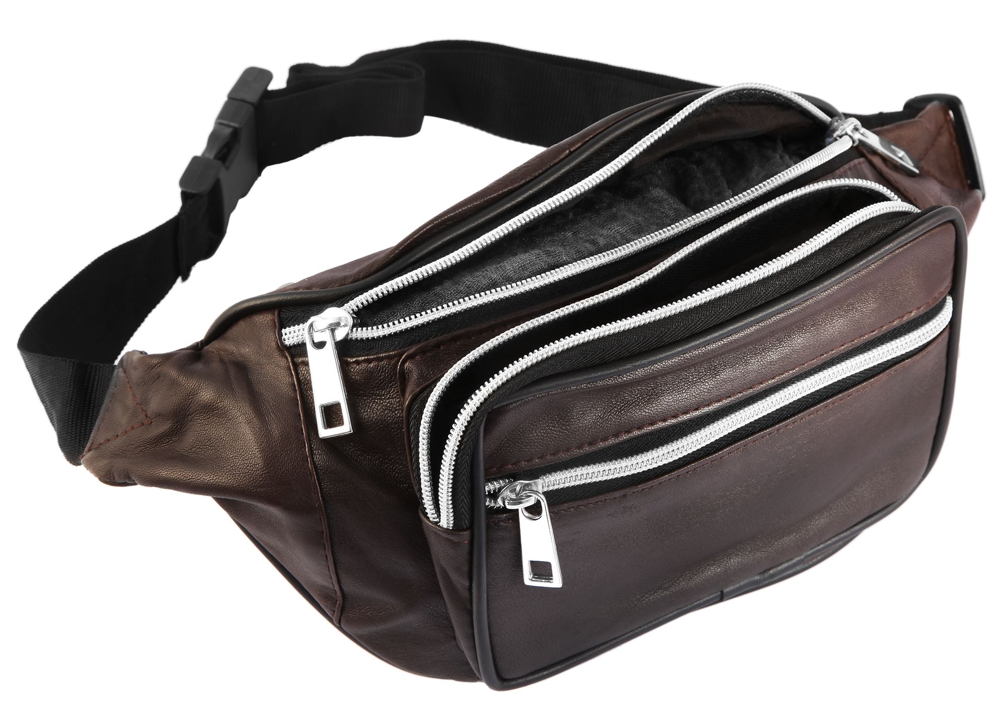 - ein Sicherheitsfach auf der Rückseite der Tasche. Die Hüfttasche hat eine