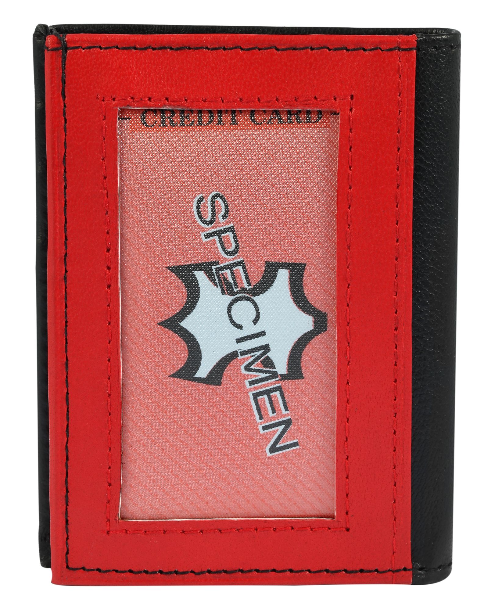 Die schwarz/rote Mini-Geldbörse der Marke Steinmeister wurde im Hochformat aus Echtleder gefertigt. Trotz ihrer Größe bietet das Portemonnaie dennoch einiges an Stauraum und zeigt sich als praktischer Begleiter für Sie und Ihn. Die Geldbörse verfügt über 1 Geldscheinfach, 1 Münzfach mit Druckknopfverschluss, 3 Kreditkartenfächer, 1 transparentes Kartenfach und 2 Einsteckfächer. Die Größe ergibt sich aus einer Länge von 10,3 cm, einer Breite von 7,5 cm und einer Stärke von 2 cm. Klein und kompakt ist der Geldbeutel ein idealer Gefährte zu zahlreichen Gelegenheiten und eignet sich hervorragend als Geschenk für die Liebsten.