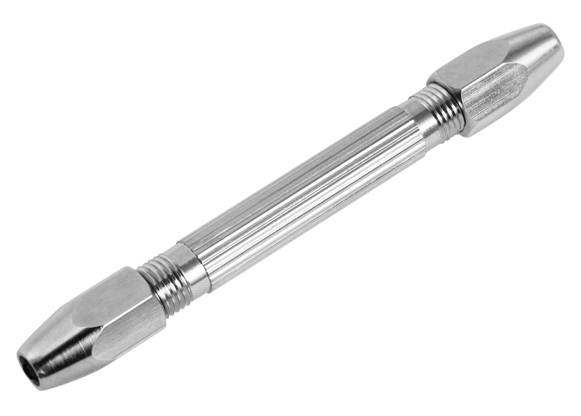 Das Stiftenklöbchen oder auch Werkzeughalter ist aus rostfreiem Werkzeugstahl gefertigt. Es hat zwei Spannfutter, die man komplett entnehmen und wenden kann, sodass man vier Möglichkeiten hat, Feinmechanik-Werkzeuge in verschiedenen Durchmessern einzuspannen. Das Werkzeug ist ein unverzichtbarer Begleiter in Uhrmacherei und Goldschmiede. Die Maße ergeben sich aus einer Länge von 8,3 cm, einem Durchmesser von 8,6 mm. Die Spannbacken haben Öffnungen von 1,0 mm, 1,5 mm, 2,0 mm und 3,0 mm.