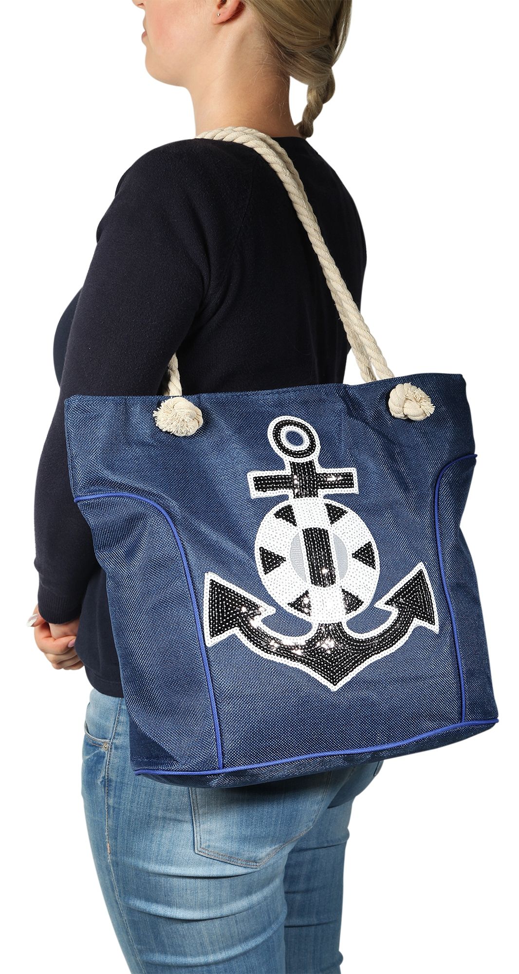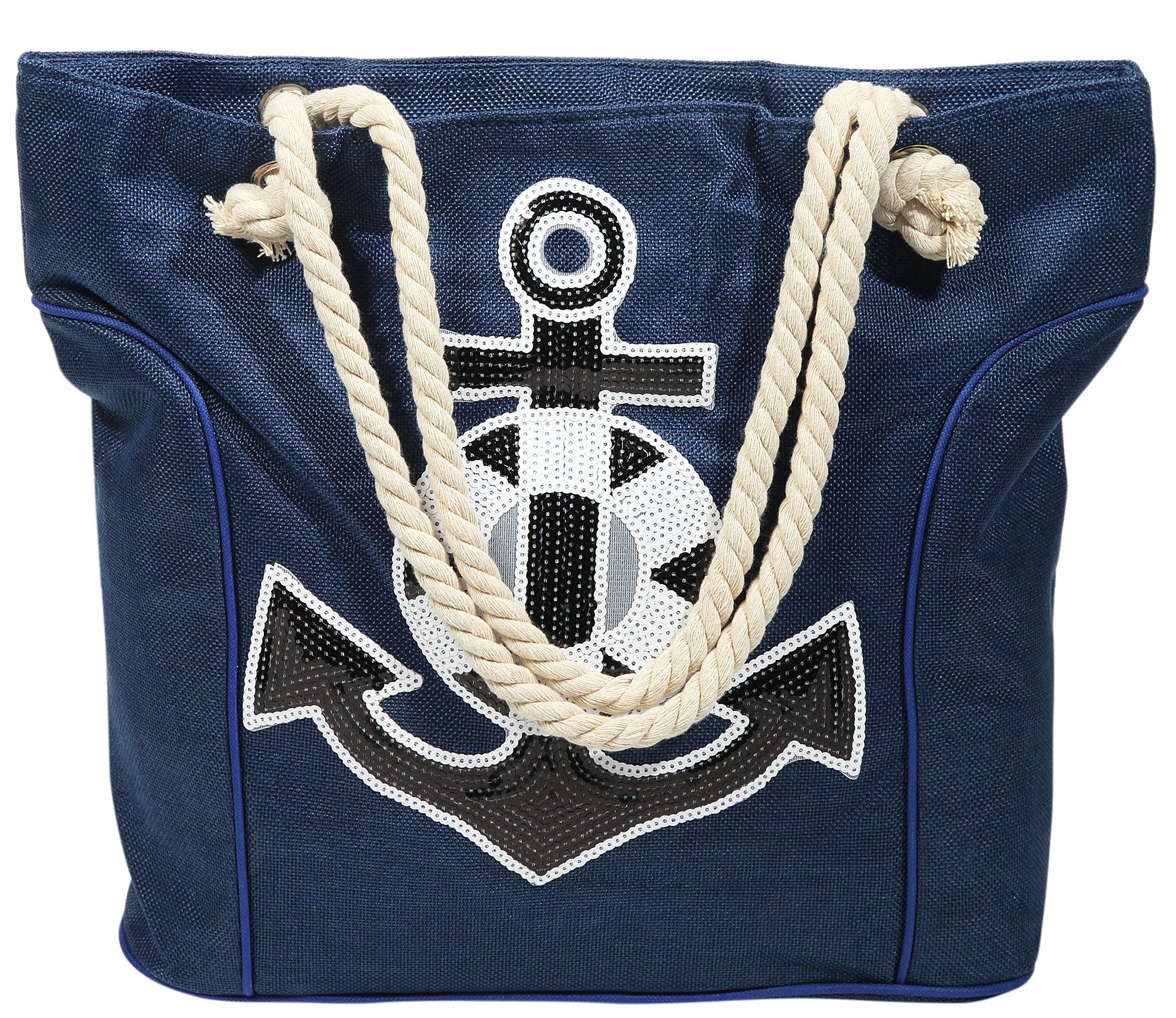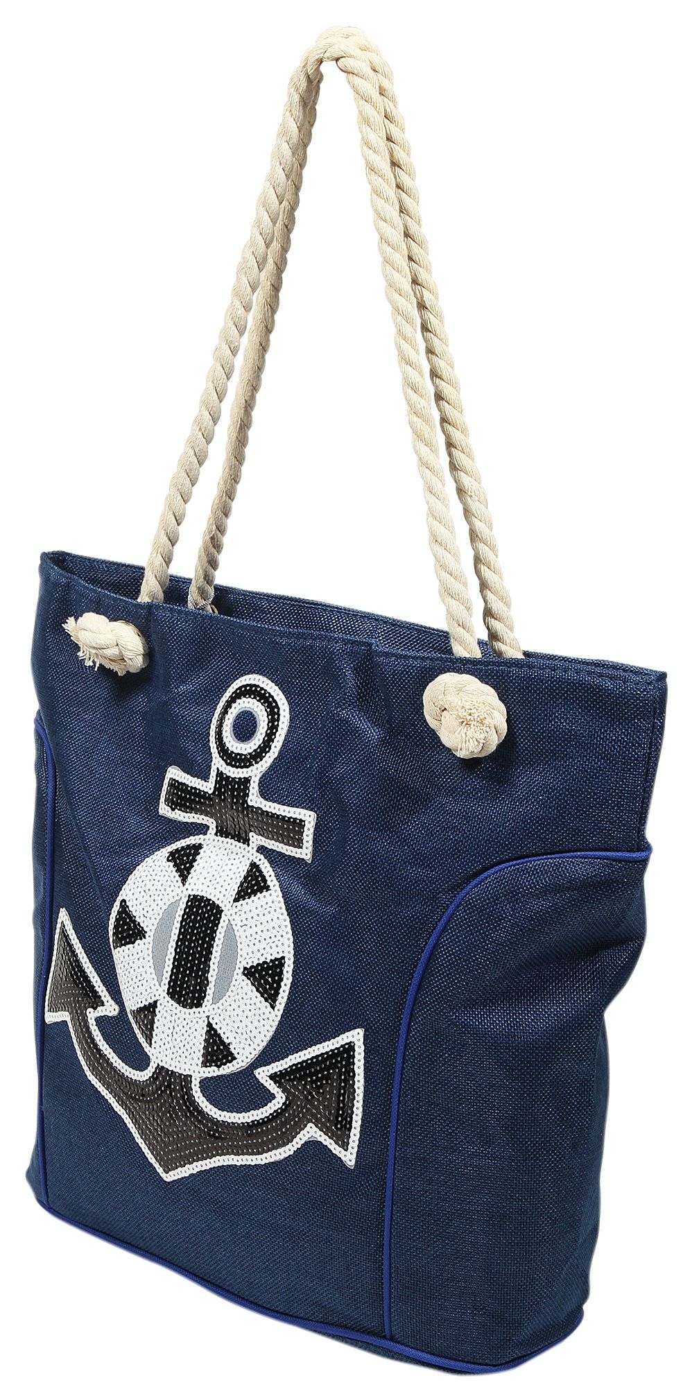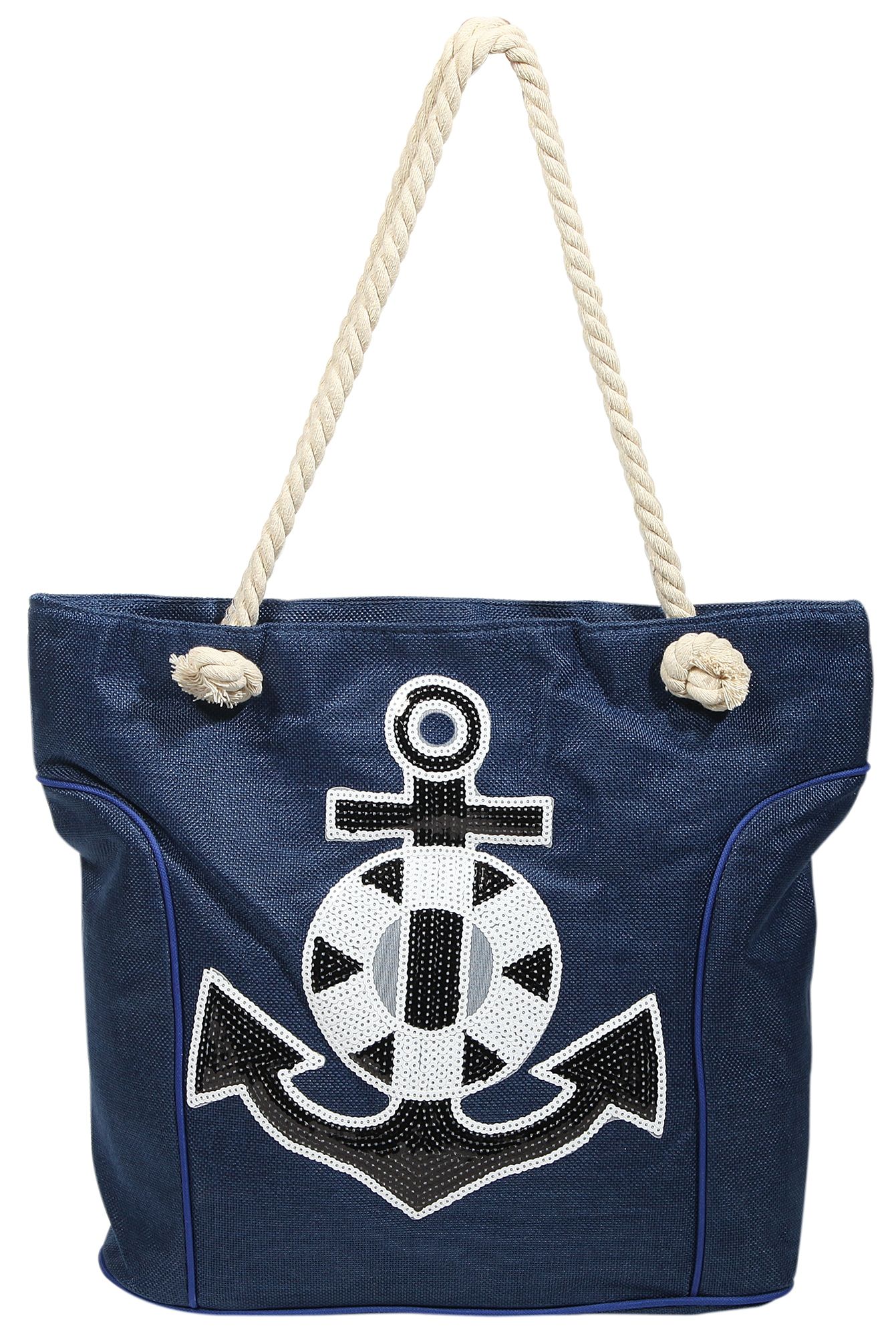 Produktinformationen "Strandtasche aus Nylon, Ankermotiv aus Pailletten, blau"