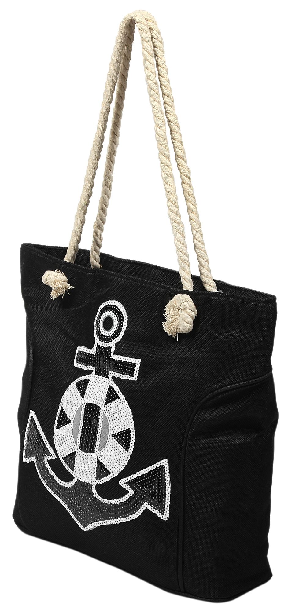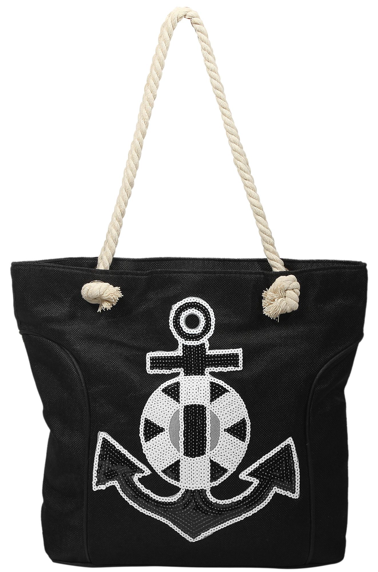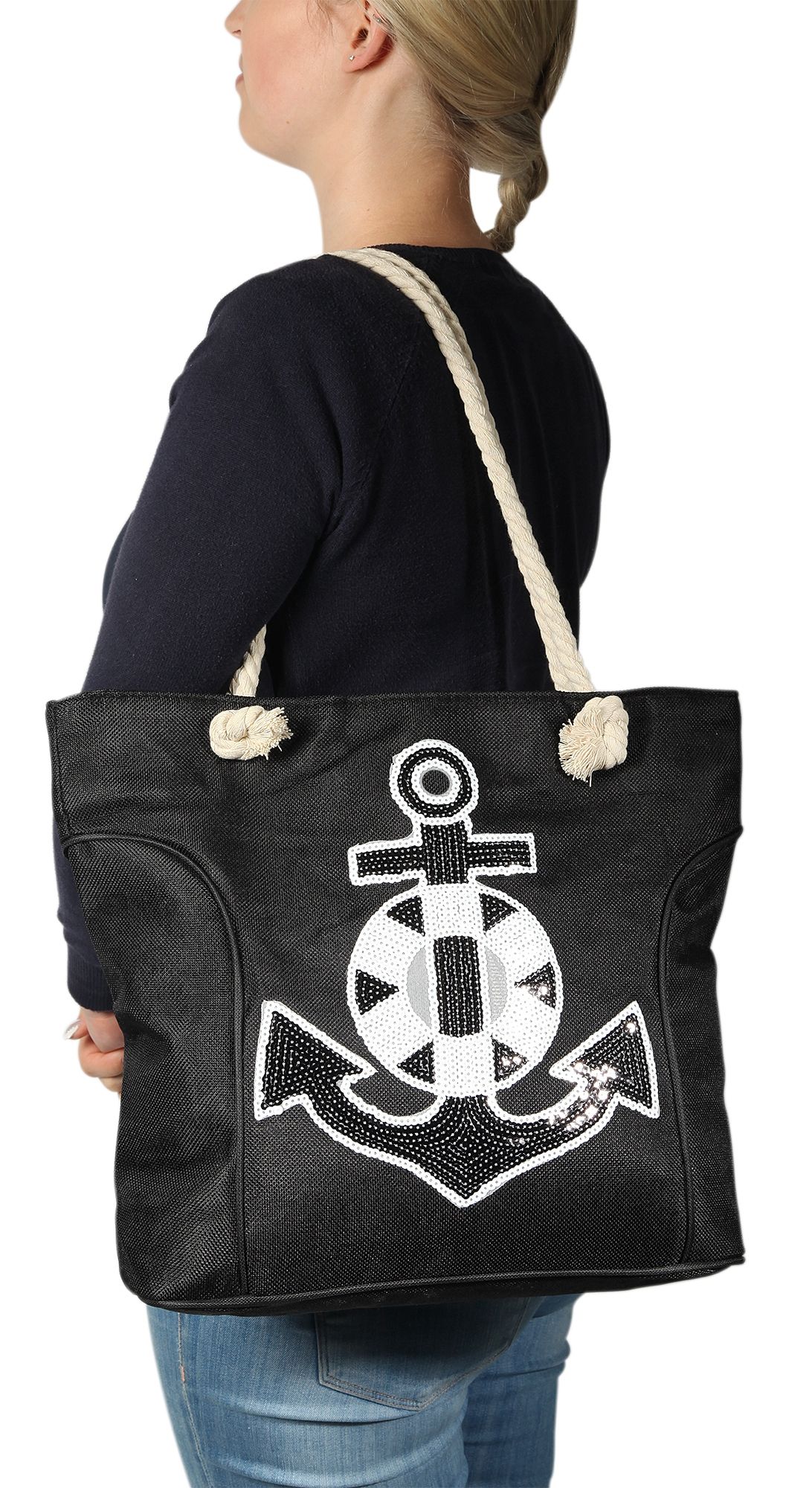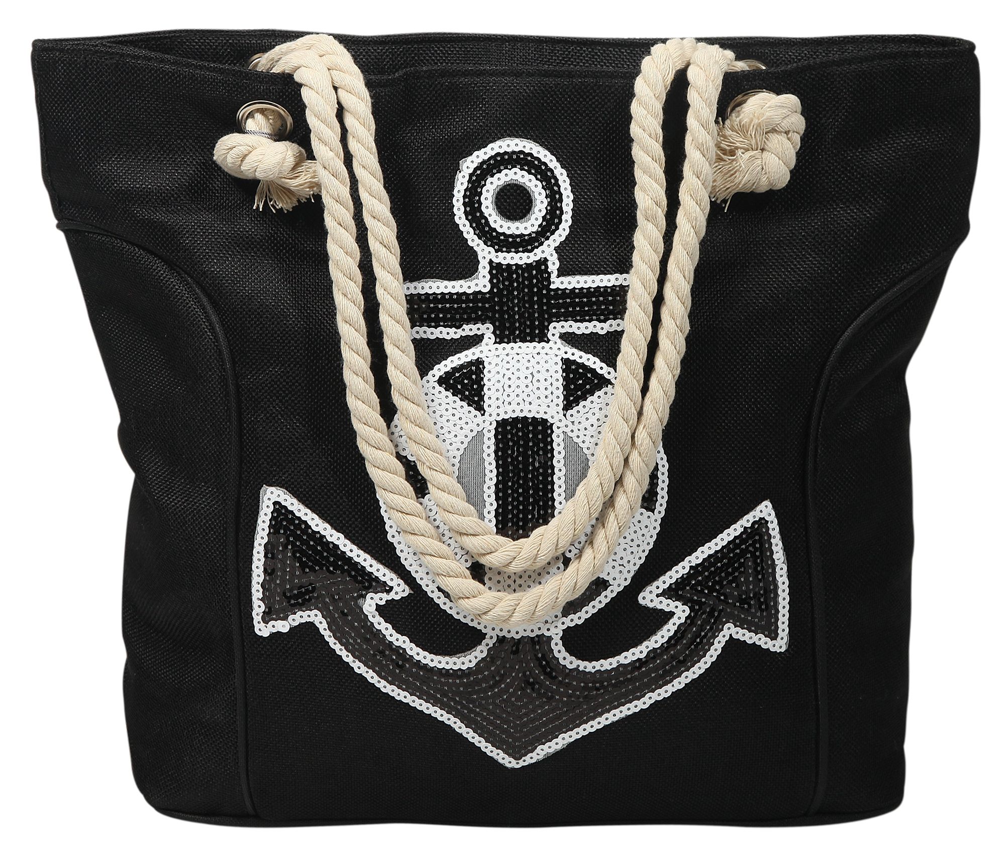 Produktinformationen "Strandtasche aus Nylon, Ankermotiv aus Pailletten, schwarz"