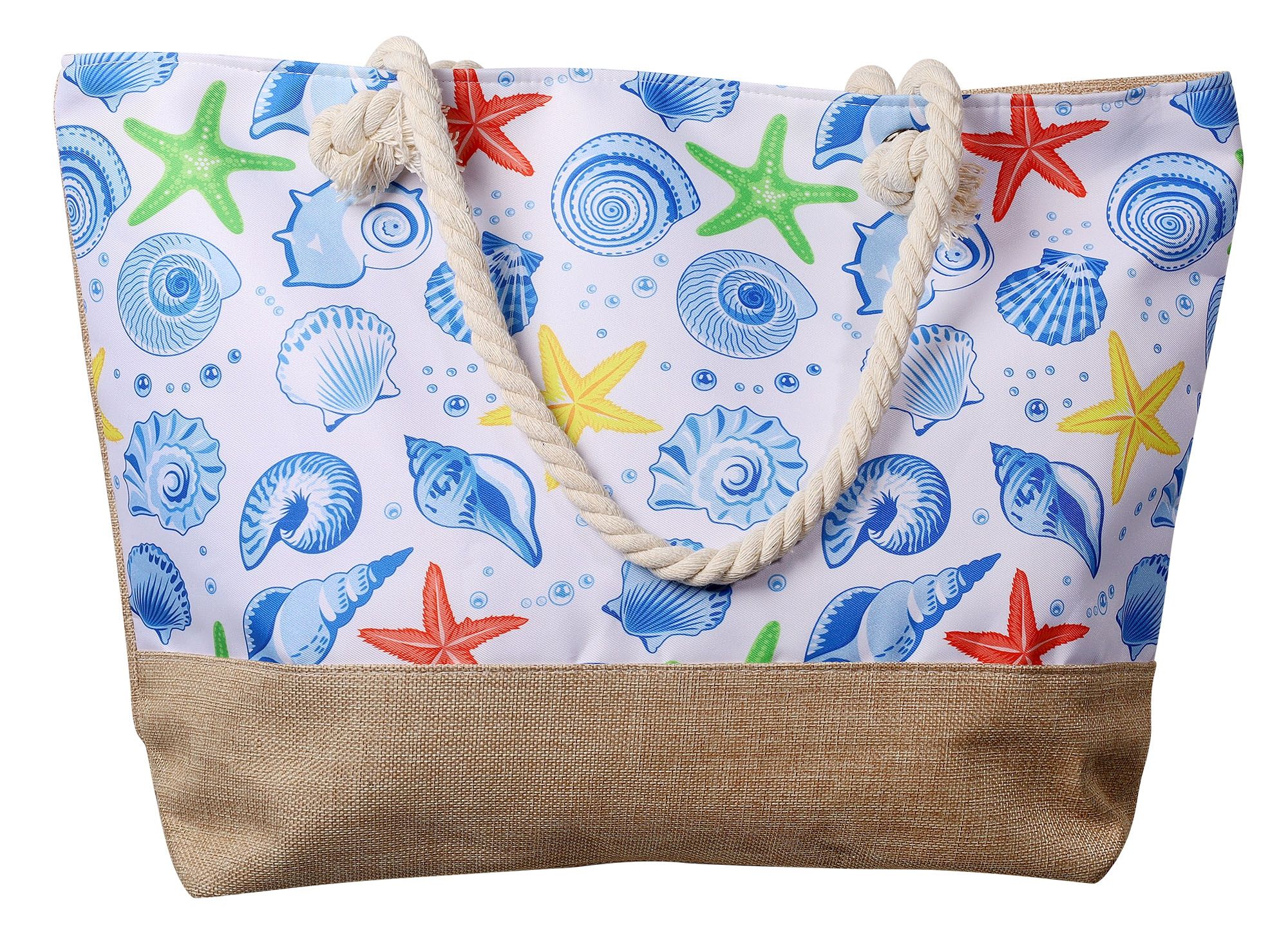 Unsere Strandtasche ist ein sommerliches Accessoire, das nicht nur durch sein maritimes Design, sondern auch durch seine praktische Größe überzeugt. Mit großzügigen Abmessungen von 54 x 37 x 14 cm ist diese Strandtasche der ideale Begleiter für sonnige Tage. Das geräumige Hauptfach wird mit einem Reißverschluss verschlossen, um die Strandutensilien oder persönlichen Gegenstände zu schützen.