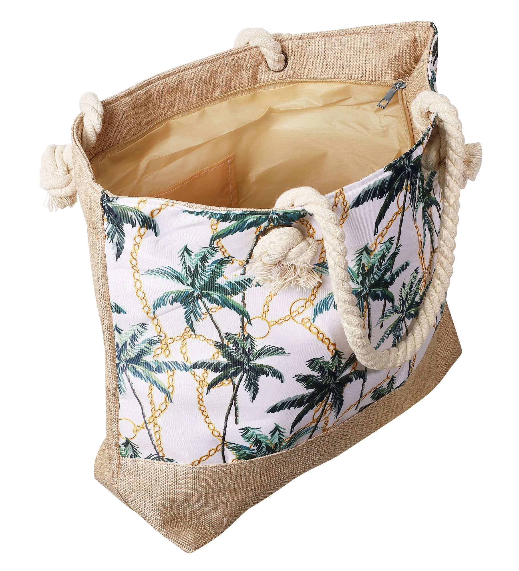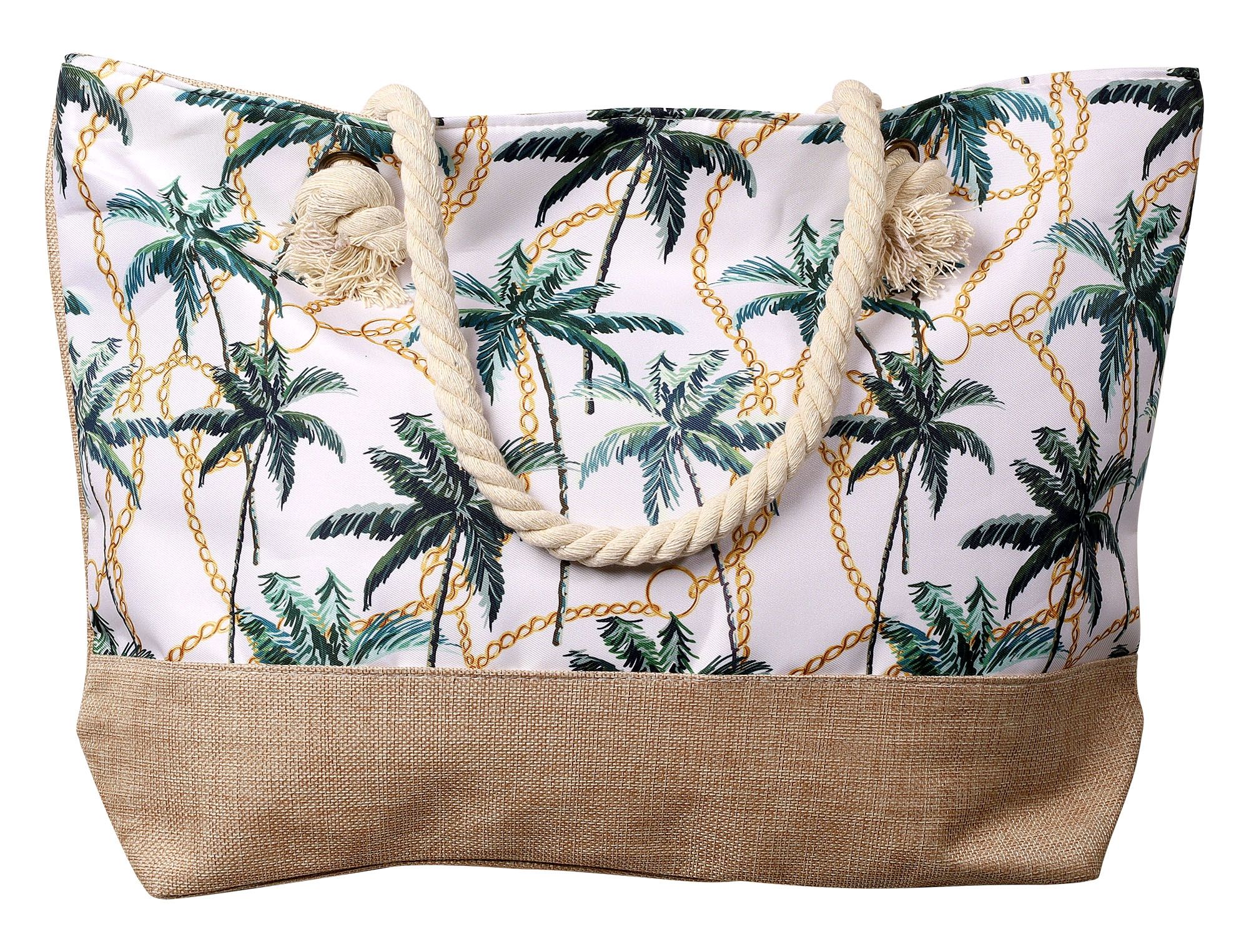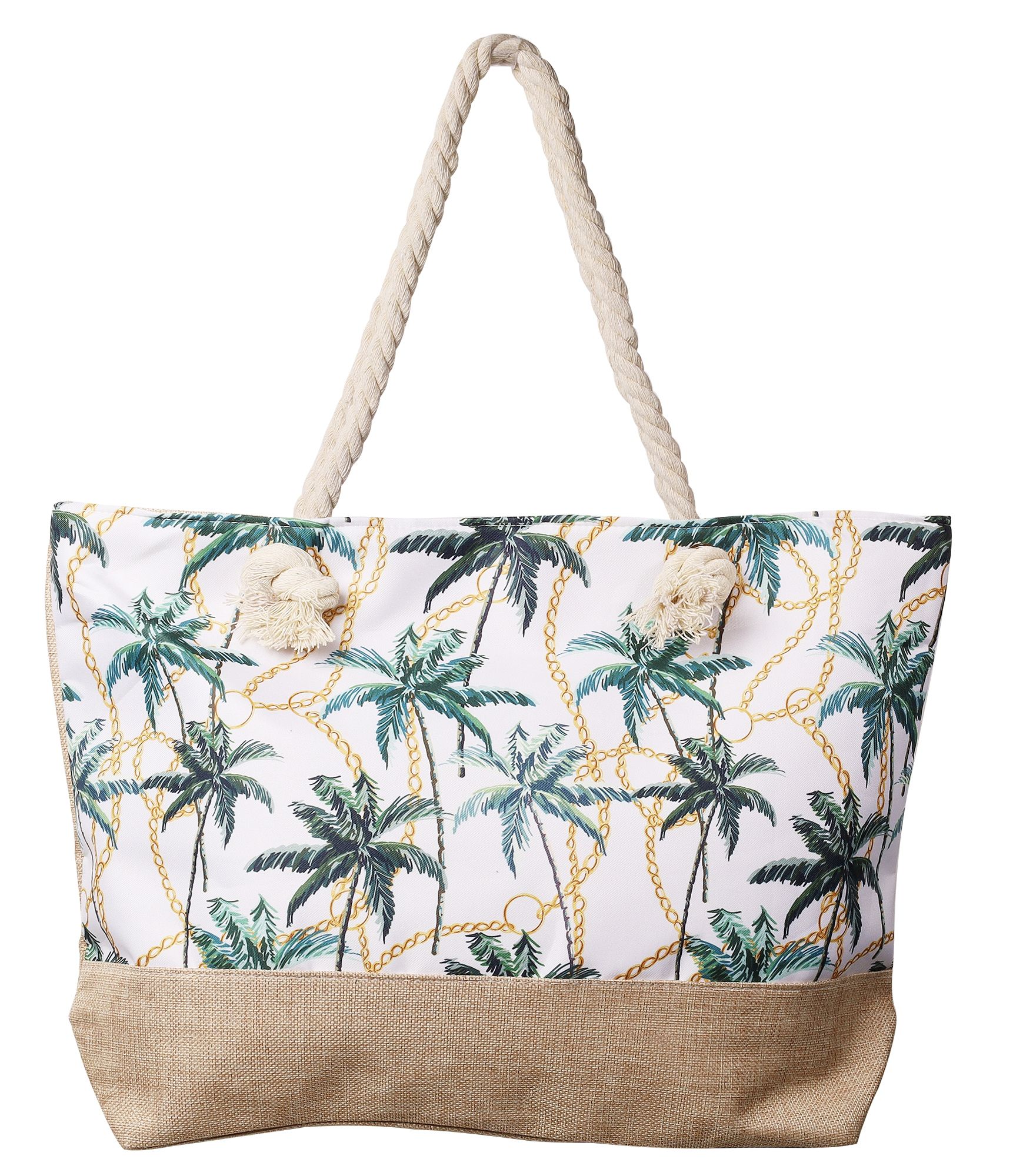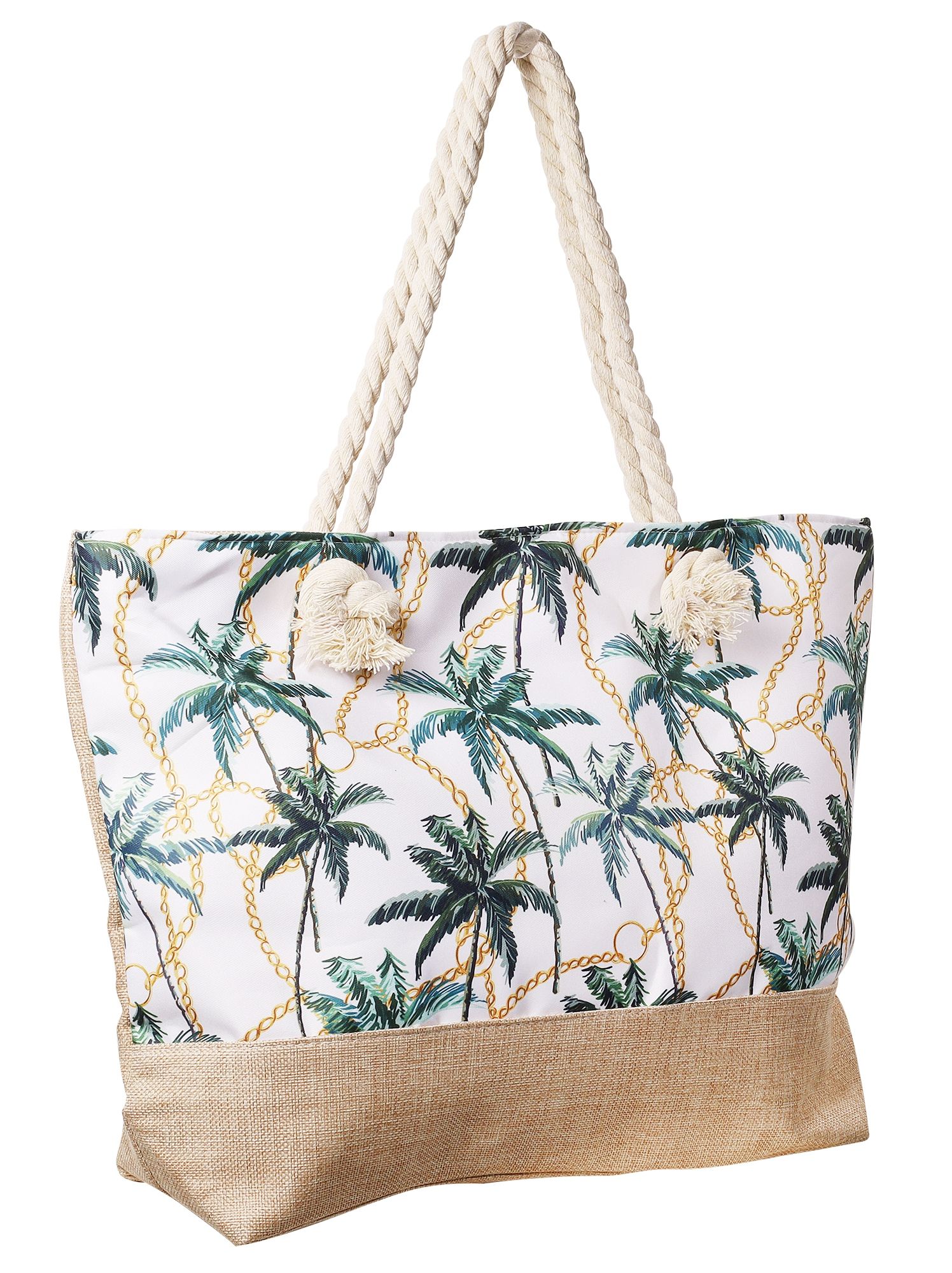 Produktinformationen "Strandtasche mit maritimen Motiven, weiß mit grünen Palmen"