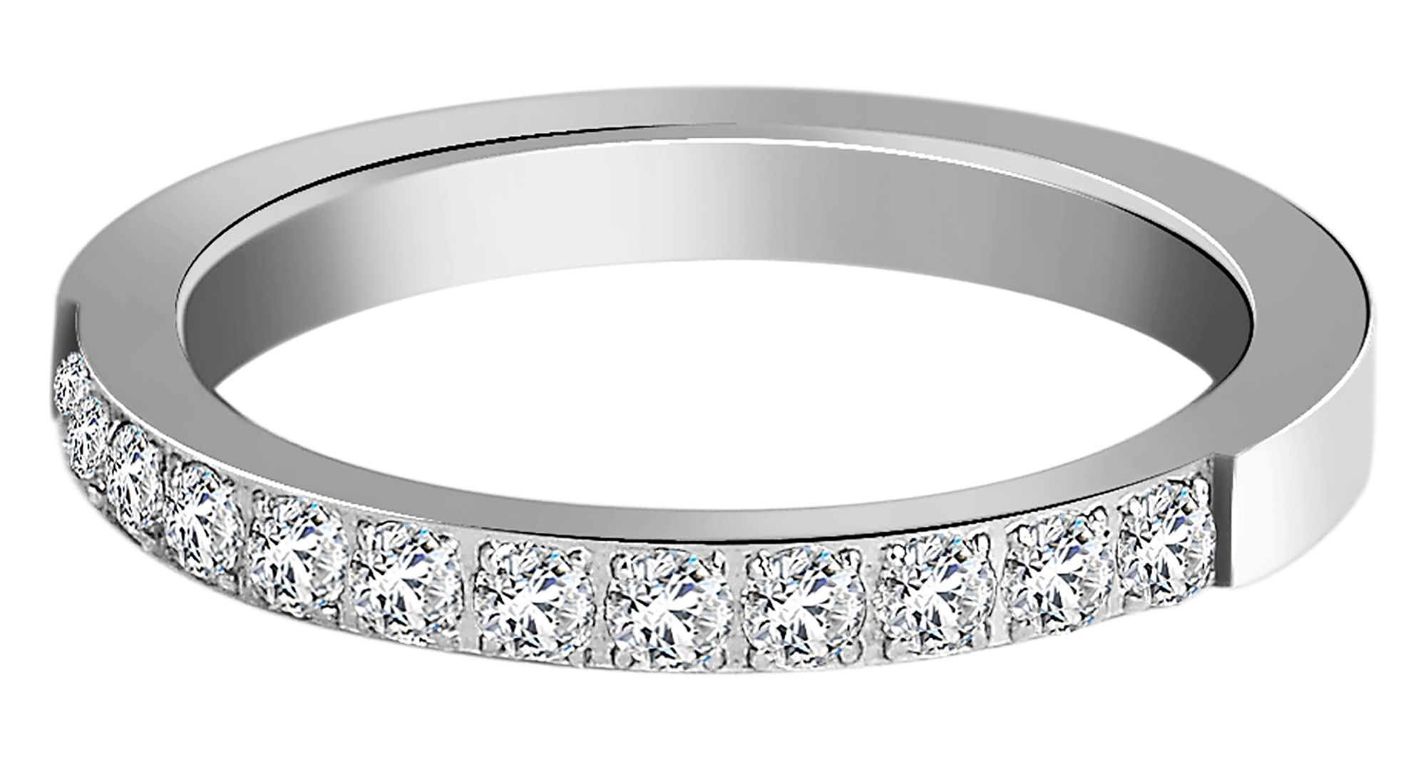 Mit seiner zierlichen Breite von nur 2,5 mm und dem funkelnden Steinbesatz ist er die perfekte Wahl als Verlobungsring. Zwölf sorgfältig gefasste Similisteine funkeln bei jeder Bewegung und bringen die Augen deiner Liebsten zum Strahlen.
