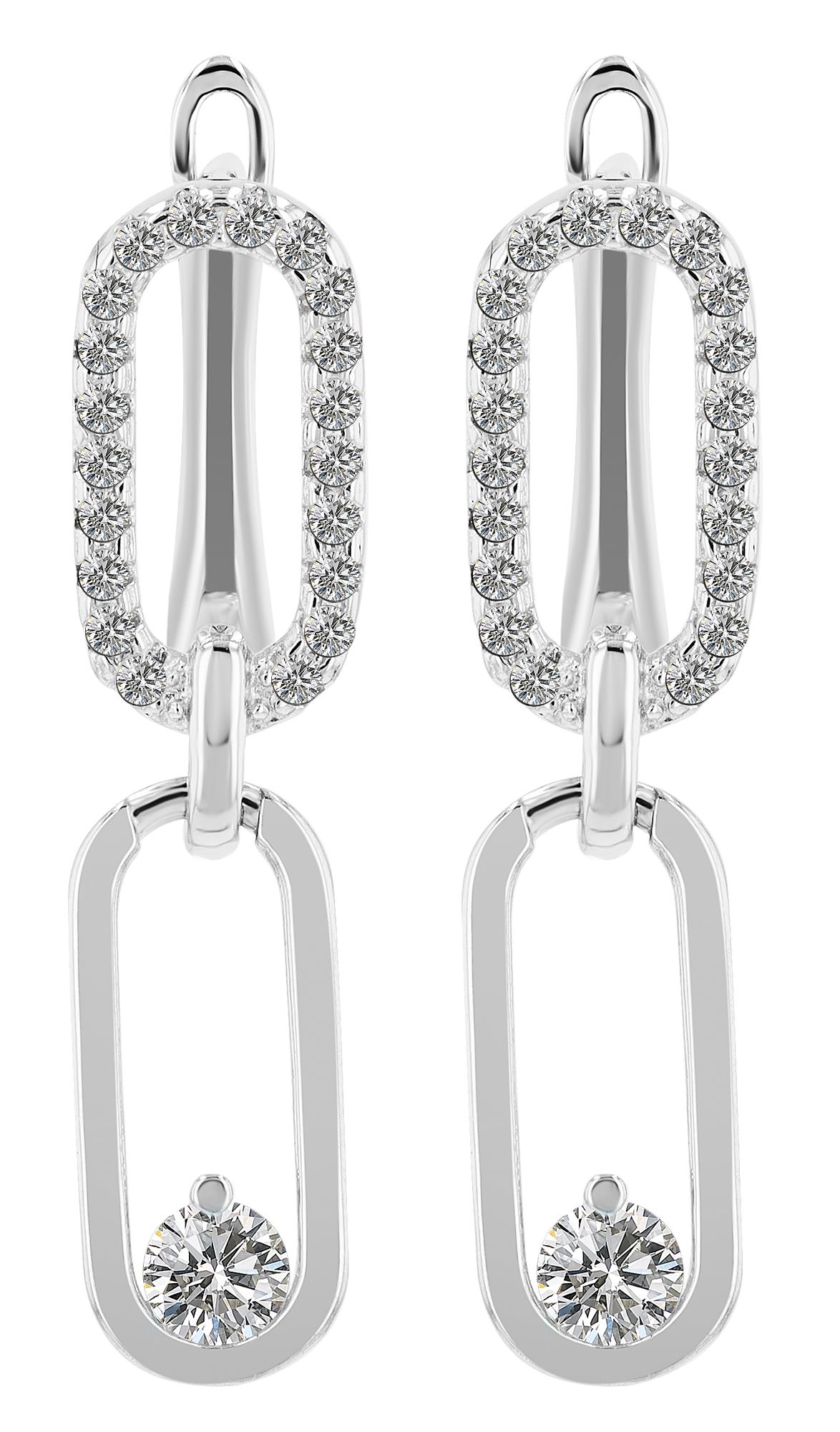 Diese Creole ist ein wahres Meisterwerk aus hochwertigem rhodiniertem 925er echtem Silber und verfügt über einen russischen Verschluss für sicheren Halt. Die Creole ist im vorderen Bereich rechteckig mit abgerundeten Ecken gestaltet und rundherum mit funkelnden Zirkonen verziert. Mit einer Größe von 12 x 6 mm ist sie ein wahrer Blickfang, und bringt Sie zum Strahlen. Der bewegliche Anhänger, ebenfalls ein Rechteck mit abgerundeten Ecken misst 11 x 6 mm. Im unteren Bereich, mittig befindet sich ein funkelnder Zirkon mit einem Durchmesser von 4 mm. Zusammen mit der Creole ergibt sich eine Gesamtlänge von 2,4 cm, die Ihre Ohren auf elegante Weise schmückt.