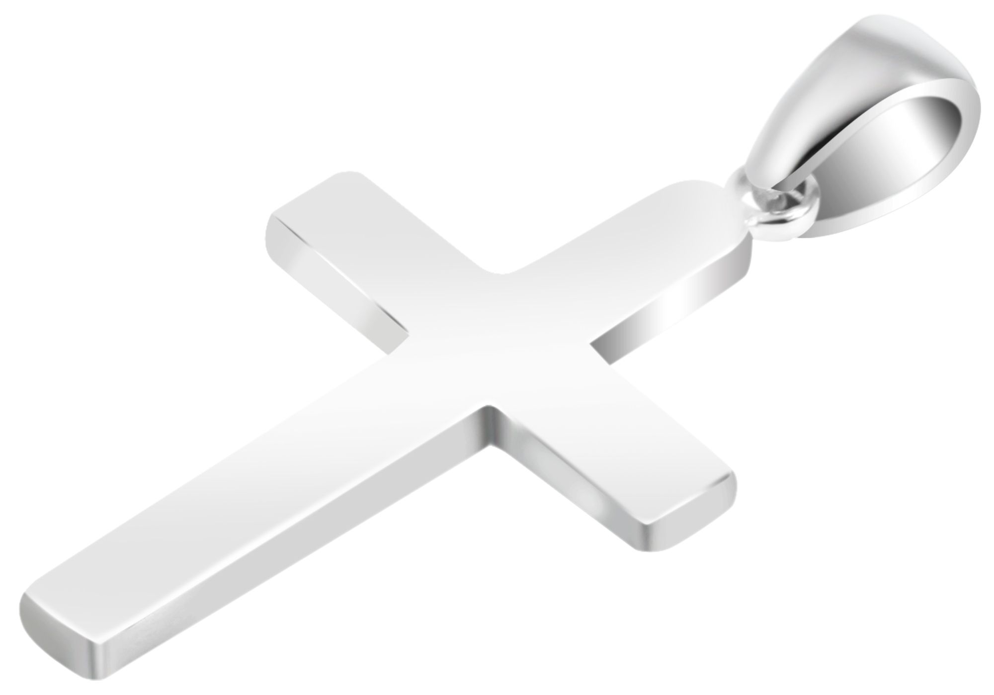 Der Kettenanhänger in Form eines Kreuzes ist aus 925er Sterlingsilber gefertigt und zusätzlich rhodiniert. Die hochwertige Beschichtung aus Rhodium verhindert ein Anlaufen des Schmuckstückes und hebt den Silberton besonders hervor. Der Anhänger präsentiert sich in einem zeitlosen Design und strahlt im hochglanzpolierten Oberflächenfinish. Dank der ovalen Öse lässt sich der Anhänger beliebig mit verschiedenen Ketten kombinieren, sodass sich im Handumdrehen ein neuer Look kreieren lässt. Bitte beachten Sie dabei, dass eine Halskette nicht im Lieferumfang enthalten ist. Die Anhängergröße ergibt sich aus einer Länge von 31,5 mm, einer Breite von 19,5 mm und einer Stärke von 2 mm (die Gesamtlänge mit der Öse ist 3,75 cm) . Die schlichte Aufmachung dieses Kettenanhängers verzaubert Jung und Alt und lässt sich zu zahlreichen Gelegenheiten ausführen. Zudem bietet er die Möglichkeit mit kleinen Gravuren versehen zu werden und wird so zu einem Accessoire für eine persönliche und individuelle Botschaft.