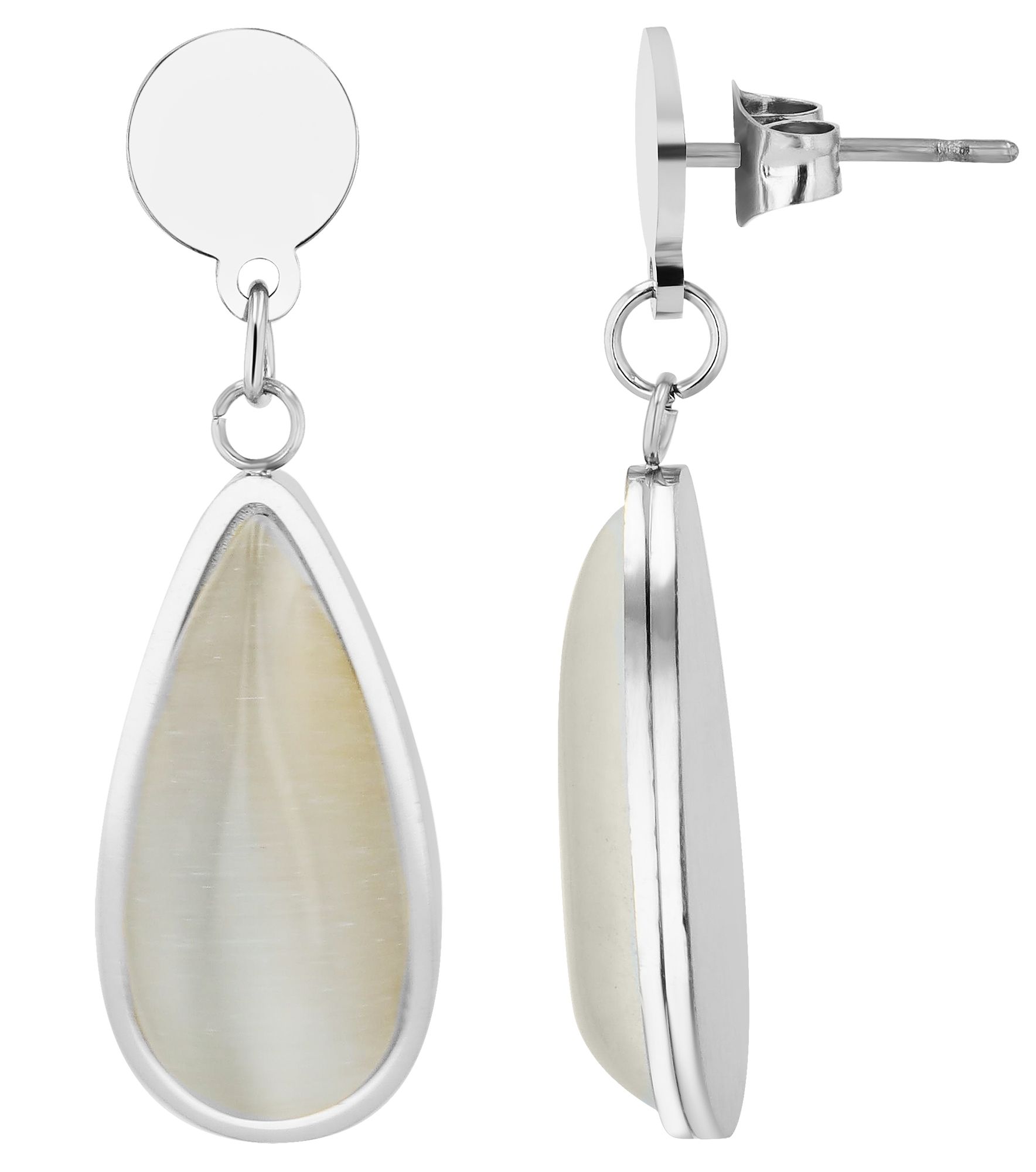 Produktinformationen ""Thalia", Akzent Edelstahl Schmuckset mit Katzenauge, Halskette und Ohrhänger, silberfarben"