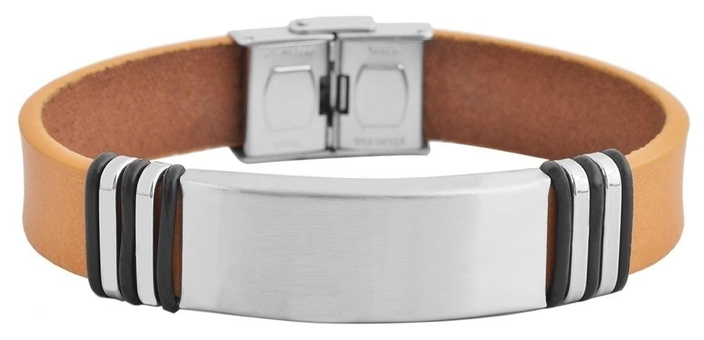 Produktinformationen ""Tim" Echtlederarmband mit Gravurplatte, 21 cm, hellbraun/ silberfarben"