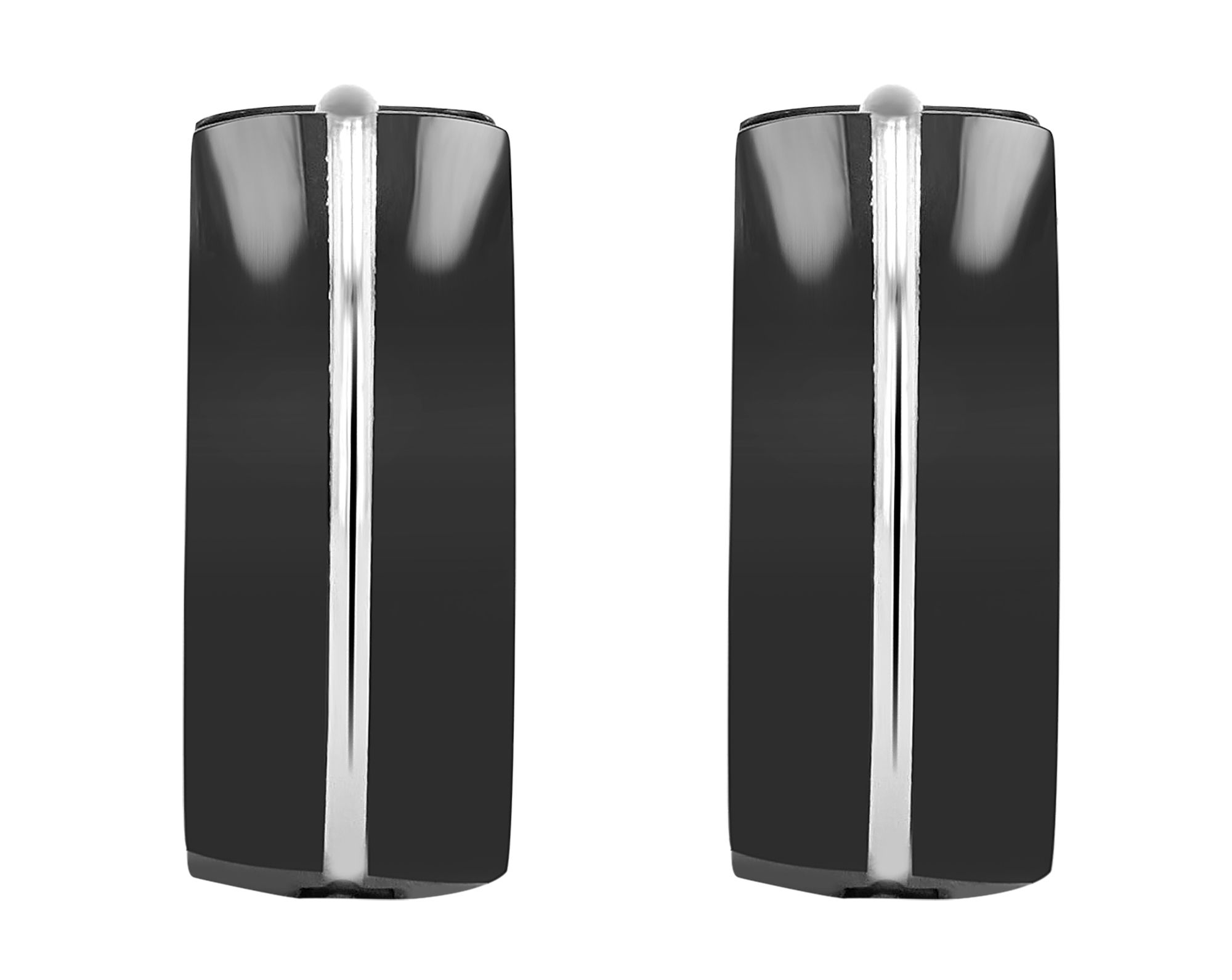 Die Größe der Creole mit einem Innendurchmesser von 9 mm und einem Außendurchmesser von 13 mm bei einer Breite von 5 mm und einer Stärke von 2 mm untermalt das bicolore Design harmonisch: ein 1 mm breiter, silberfarbener Mittelstreifen wird eingerahmt durch zwei 2 mm breite, schwarze Creolenränder.