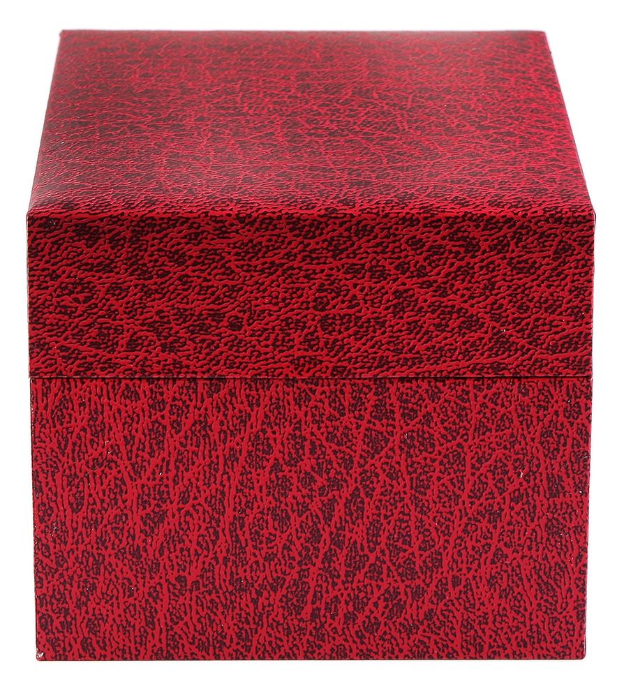 Die rote Uhrenbox zum Aufklappen wurde aus hochwertigem und robustem Karton gefertigt. Durch das mit Struktur versehenes Oberflächenfinish bekommen die Boxen ein stilvolles und elegantes Design, sodass nicht nur die Qualität überzeugt, sondern auch die Optik. Im Inneren befindet sich ein samtbezogenes Uhrenkissen in Schwarz, welches für eine ordentliche Aufbewahrung von Damen- und Herrenuhren dient. Die Box eignet sich hervorragend zur Präsentation und Aufbewahrung von Uhren jeglicher Art und ist natürlich auch perfekt zum Verschenken. Die Größe ergibt sich aus einer Länge von 11 cm, einer Breite von 8,8 cm und einer Höhe von 7,7 cm.