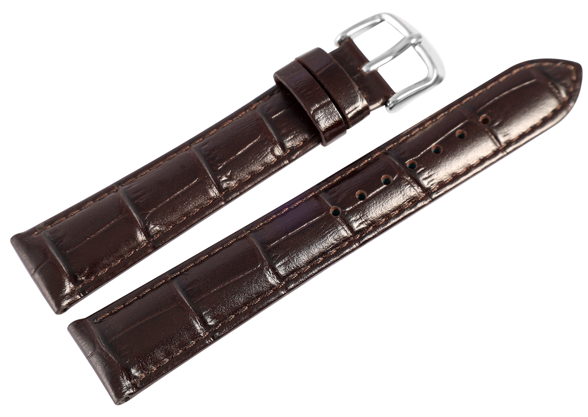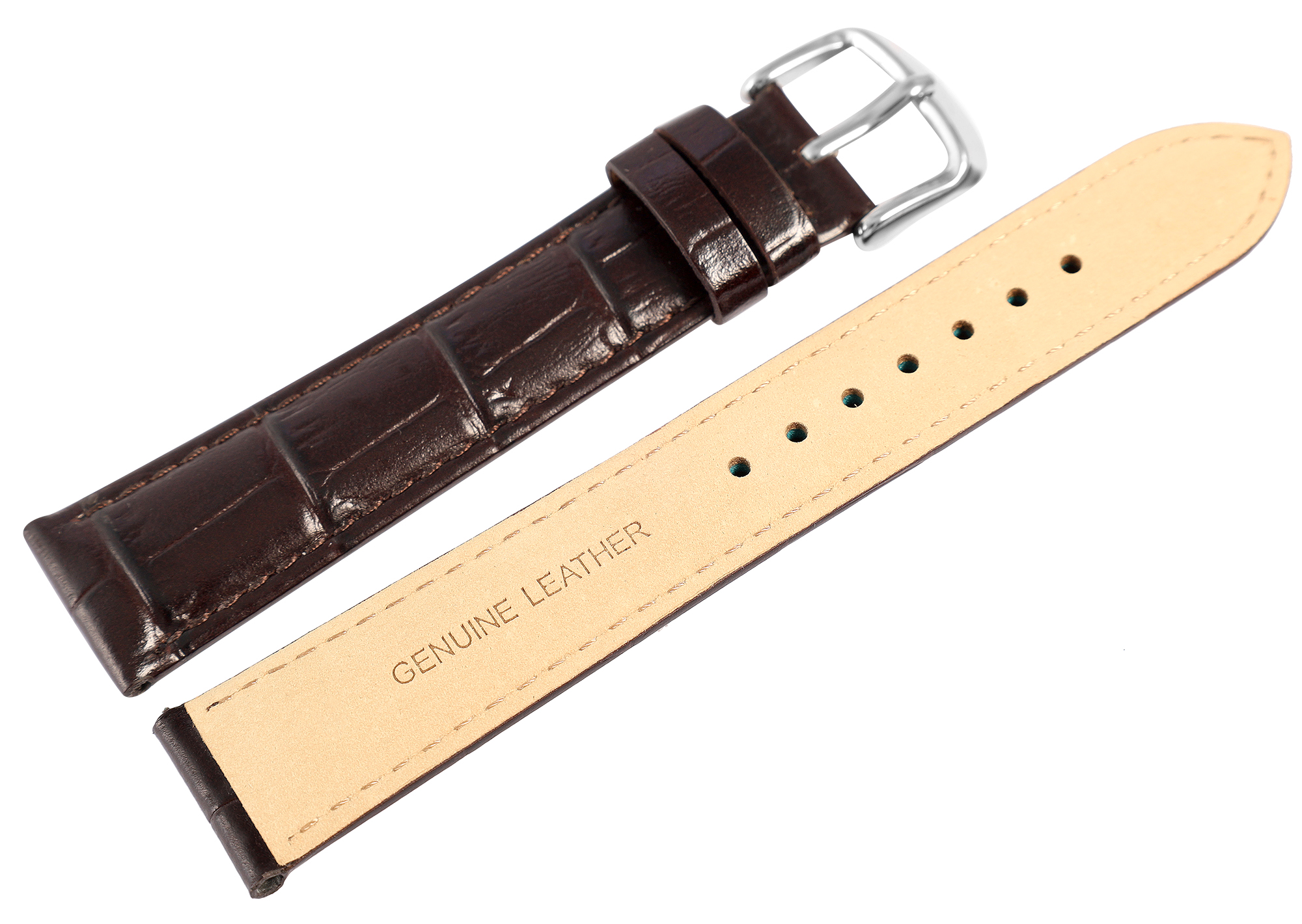 Produktinformationen "Uhrenarmband aus Echt Leder, Kroko-Optik, dunkelbraun, 18 mm"