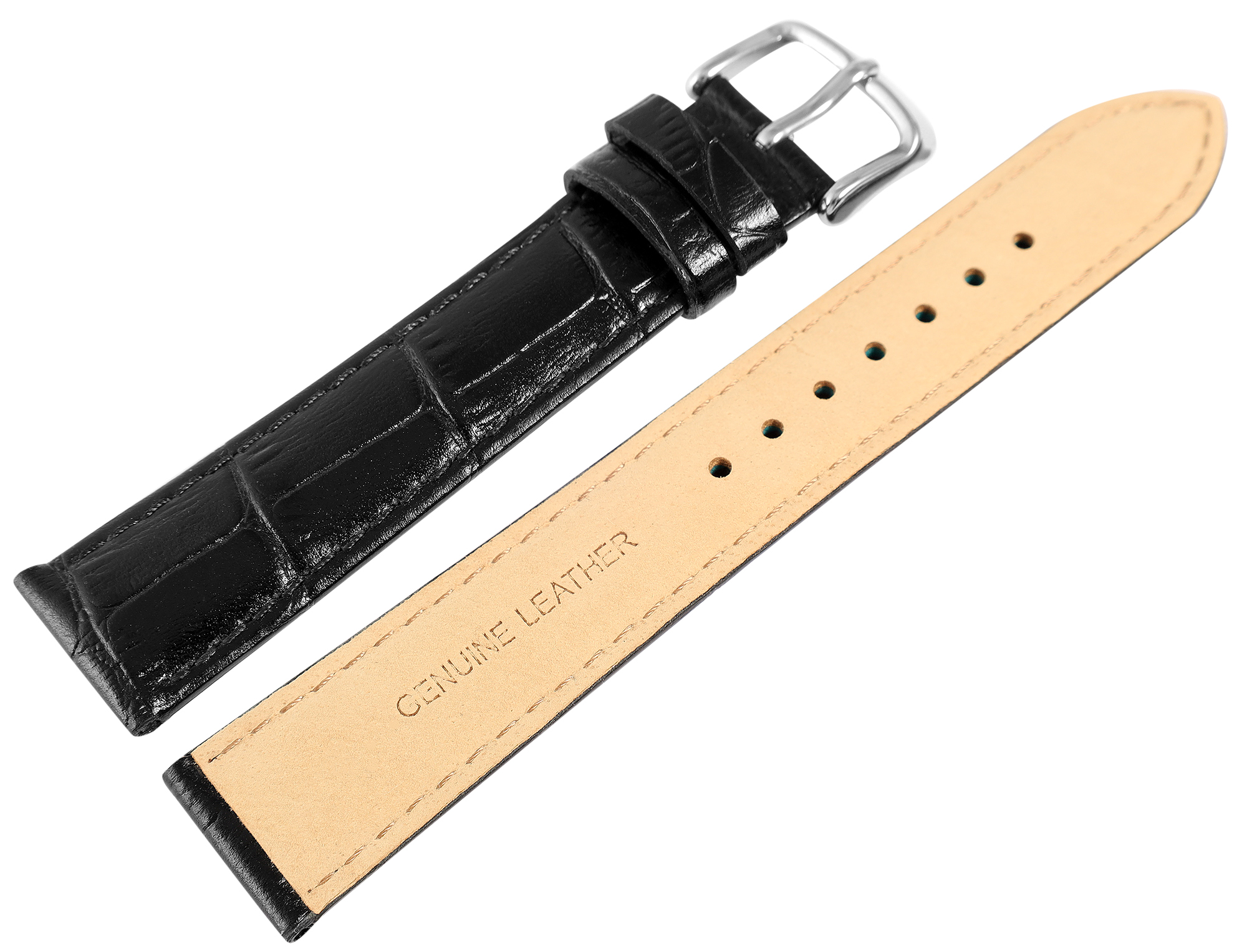 Produktinformationen "Uhrenarmband aus Echt Leder, Kroko-Optik, schwarz, 18 mm"