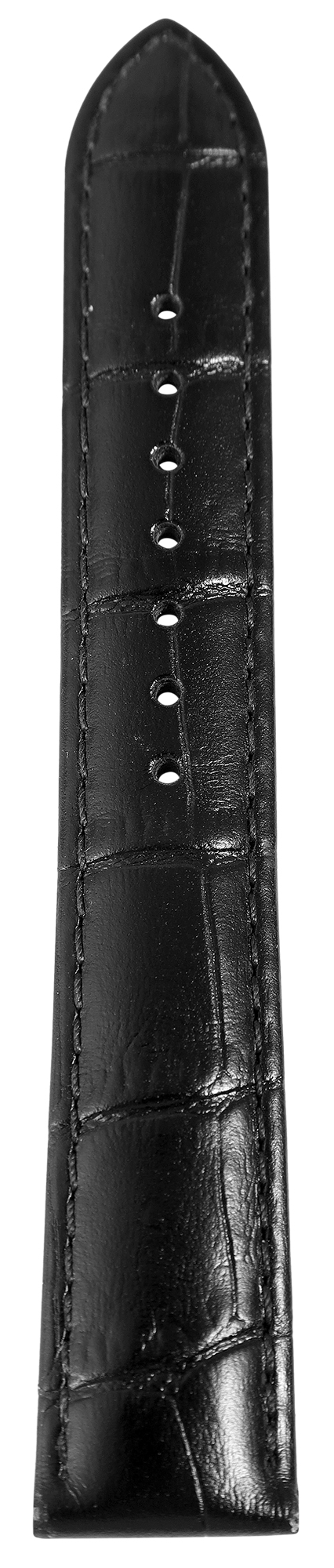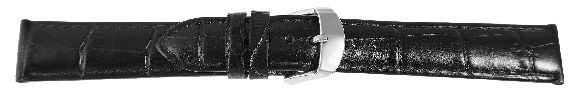 Das Armband wurde aus hochwertigem Echtleder hergestellt und besticht durch seine markante Oberflächenstruktur in Krokodil-Optik und die klassische Farbe Schwarz. Die dezente Naht und das schlichte Design sorgen für einen luxuriösen, eleganten Look, der zu jeder Uhr passt.