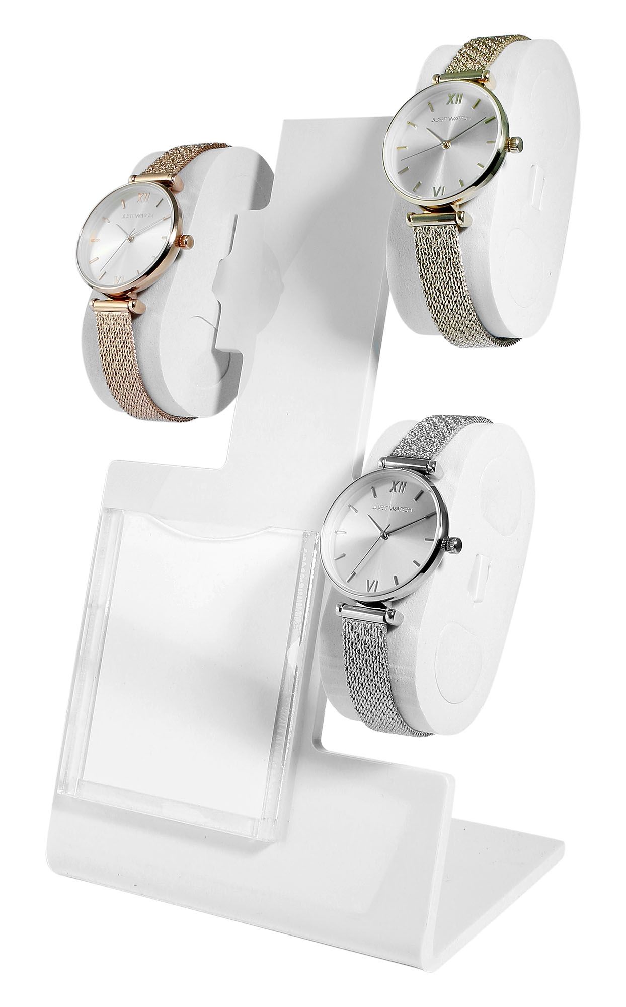 Produktinformationen "Uhrendisplay für 3 Uhren (Dekoserie Shiny) mit Werbefläche, Kunststoff, 22 cm, weiß"