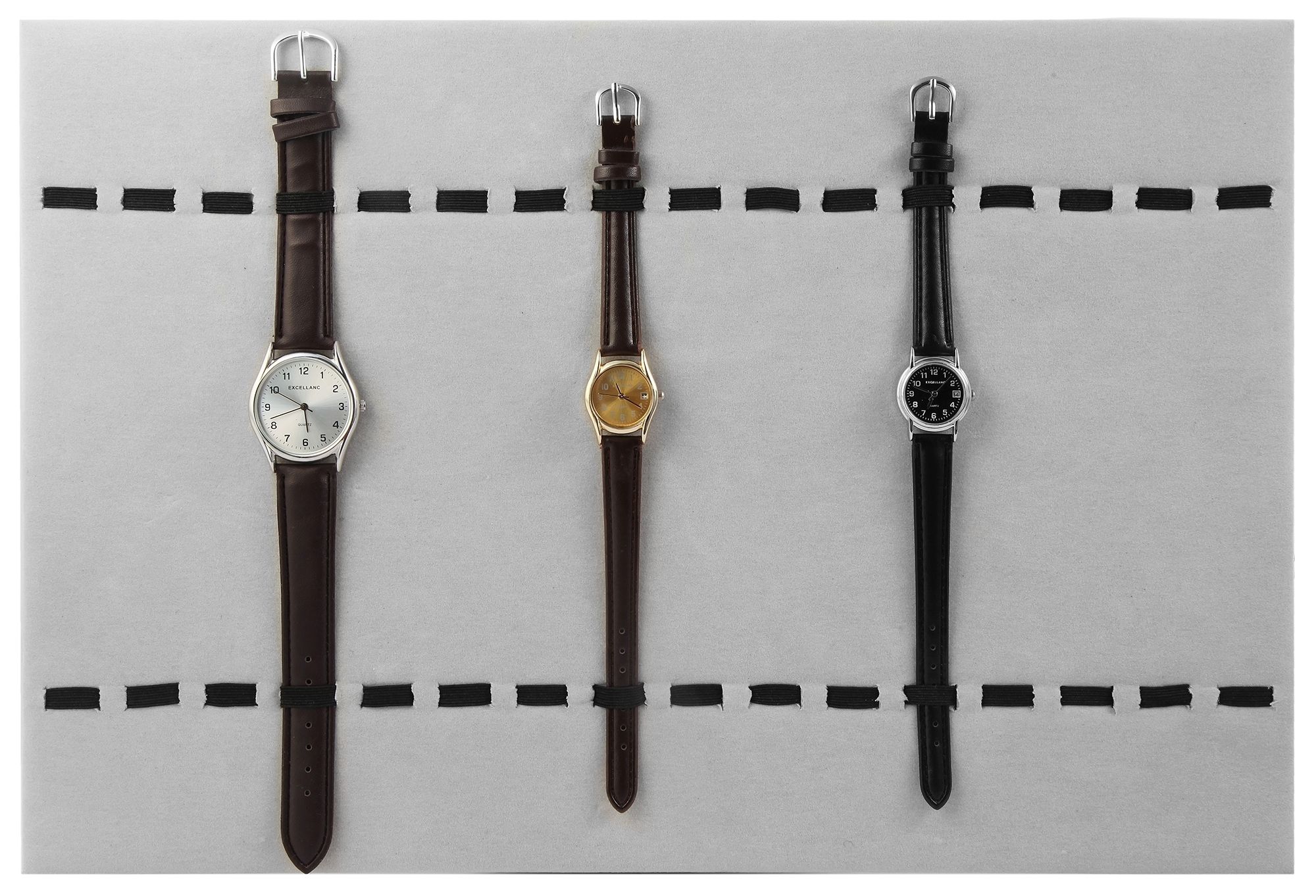 Produktinformationen "Uhrendisplay, grau, mit Gummizug, 39 cm x 26 cm x 0,5 cm"