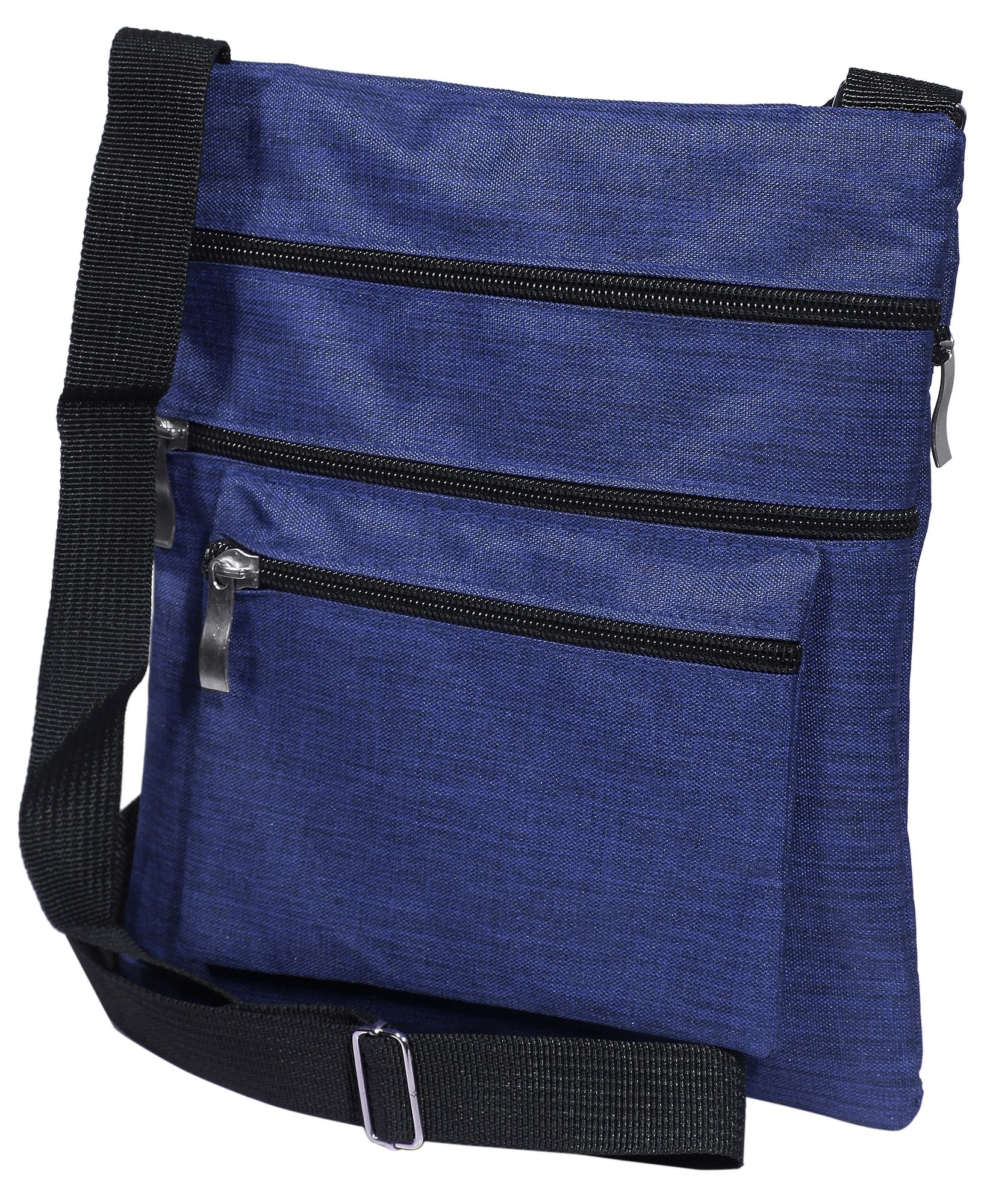 Die blaue Handtasche ist aus Textil gefertigt und ist dadurch sehr belastbar und stabil. Die Vorderseite ist mit zwei großen Reißverschlussfächern und einem kleineren Fach ausgestattet. Zusätzlich verfügt die Handtasche über ein weiteres Fach auf der Rückseite, welches ebenfalls mit einem Reißverschluss ausgestattet ist. Die Tasche ist ideal um alle wichtigen Gegenstände zu verstauen, ob auf Reisen oder im Alltag - sie ist ein toller Gefährte und ein modischer Begleiter. Desweiteren verfügt die Tasche über einen Umhängegurt, welcher von der Länge individuell einstellbar ist. Sie hat eine Länge von 24 cm, eine Breite von 20 cm und eine Materialstärke im ungefüllten Zustand von 1,0 cm. Somit hat sie eine optimale Größe für jede Gelegenheit.