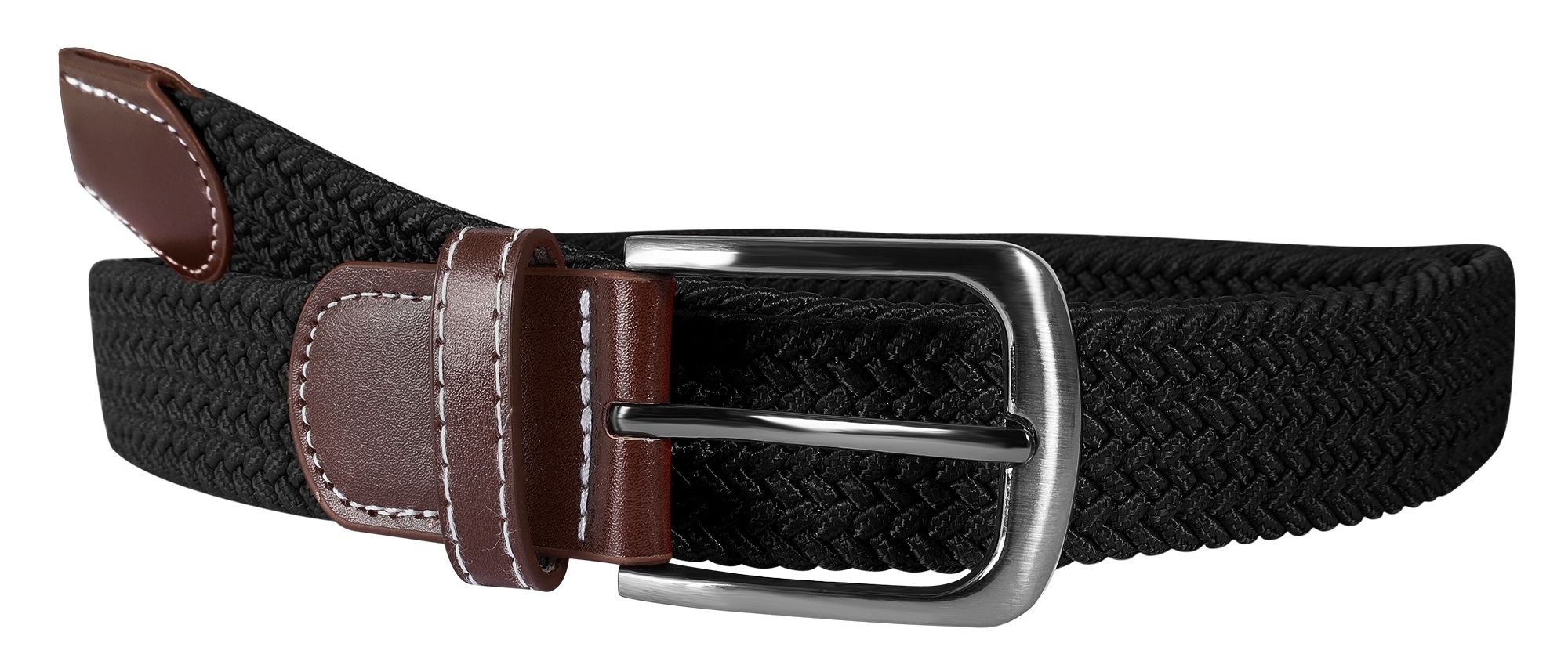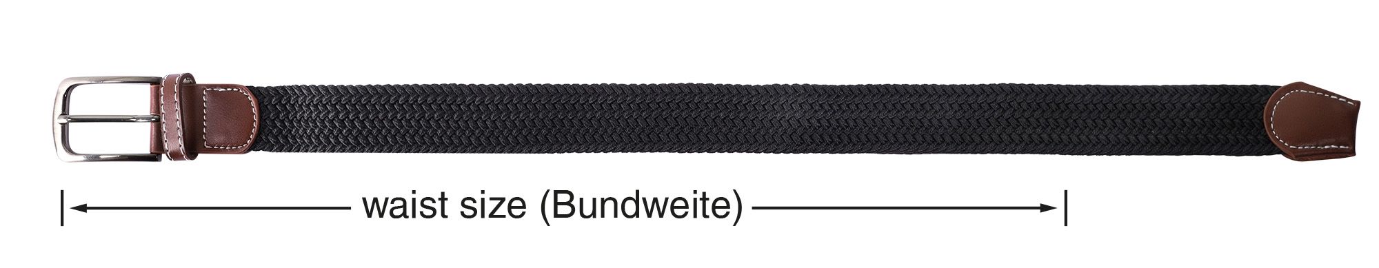 Der Unifarbene Textilgürtel mit Flechtmuster in schwarz, überzeugt mit einer sportiven Optik. Beide Gürtelenden sind mit braune Lederimitat Applikationen versehen und lassen den Flechtgürtel nicht nur sportlich, sondern auch elegant wirken. Hergestellt aus hochwertigem Textilmaterial, bietet unser Flechtgürtel einen angenehmen Tragekomfort. Der Gürtel besitzt eine robuste Dornschließe aus Metall, die Sie genau dort schließen können, wo es für Sie am bequemsten ist. Bei unserem Flechtgürtel haben sie verschiedene Längenoptionen 100 cm, 110 cm und 120 cm, er hat eine Breite von 3,2 cm sowie einer Stärke von 0,5 cm, somit ist für jeden die passende Größe dabei. Er ist aufgrund des Materials sehr robust, langlebig und reißfest. Ein toller Freizeitgürtel aus Textil für den sportlichen Look.