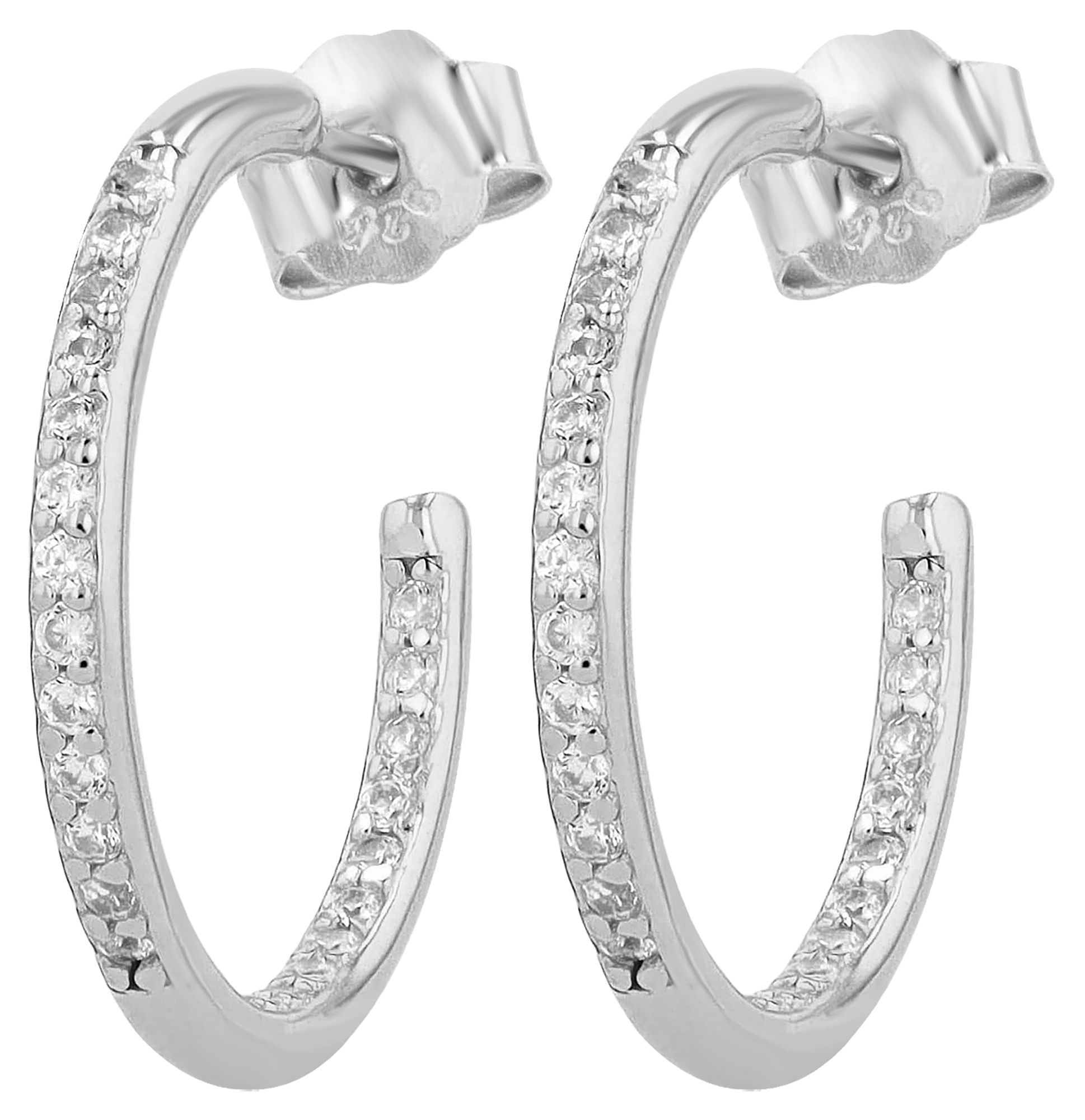 Produktinformationen ""Uzma" 925/- Echt Silber Creolen mit Steckverschluss, Zirkoniabsatz, silberfarben rhodiniert"