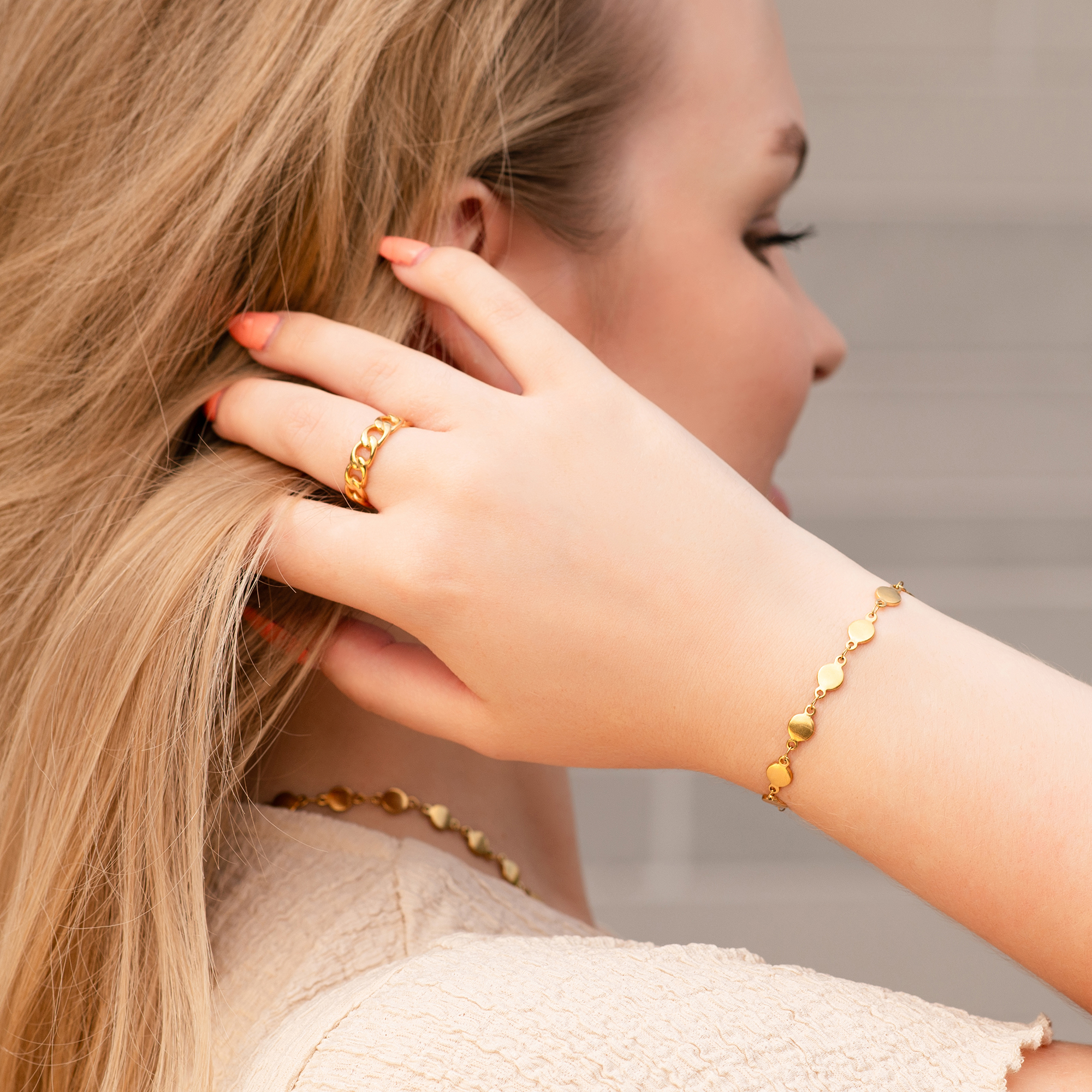 Die Gesamtlänge der Halskette beträgt 50 cm, die des Armbandes 21 cm. Sowohl die Kette als auch das Armband haben eine Materialstärke von 1,5 mm. Das modische Schmuckset glänzt durch sein modernes minimalistisches Design in Kombination mit der Verwendung eines robuster und hochwertigen Materials. Ein zeitgemäßer Look, der sowohl zu Feierlichkeiten, als auch im Alltag getragen werden kann.