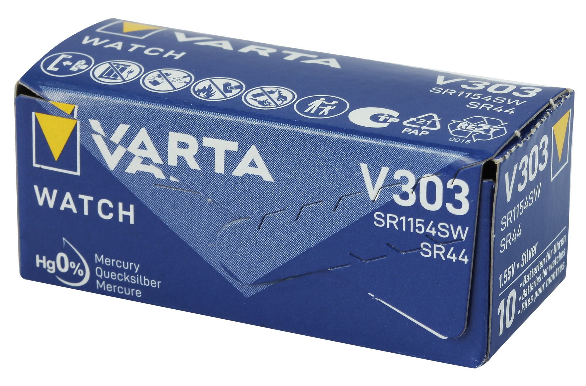 Marke: Varta Typ: Knopfzellen Batterie Material: Silberoxid Spannung: 1,55 V SR 44 SW Anwendungen: Uhren, Taschenrechnern, Spielzeugen, Fernbedienungen oder Taschenlampen Verpackungsinhalt: 10 StückEntsorgungshinweis.pdf