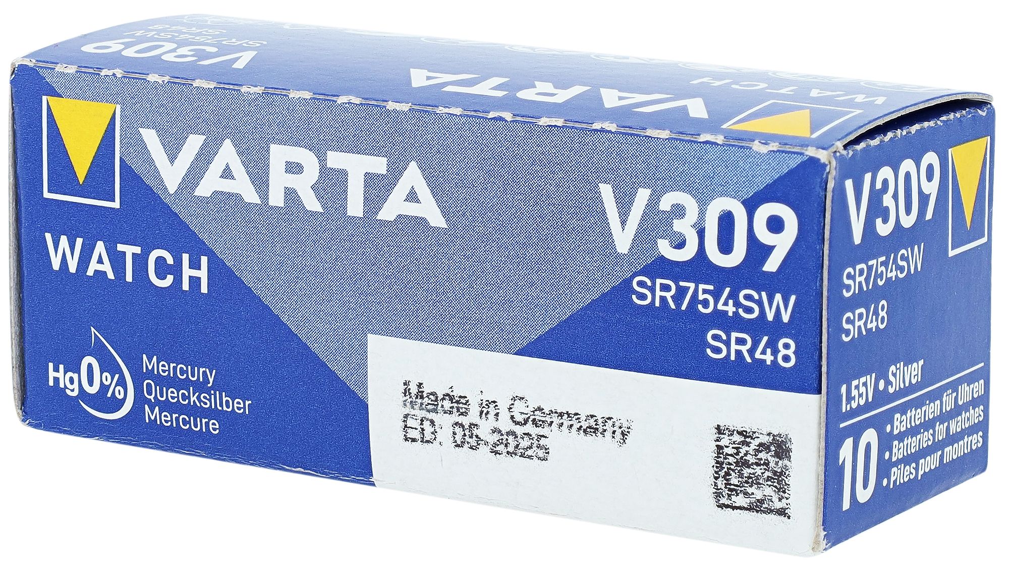 Produktinformationen "Varta Batterie V309/16 (SR754SW) Silberoxid Knopfzellen 1,55 V - Verpackungseinheit 10 Stück"