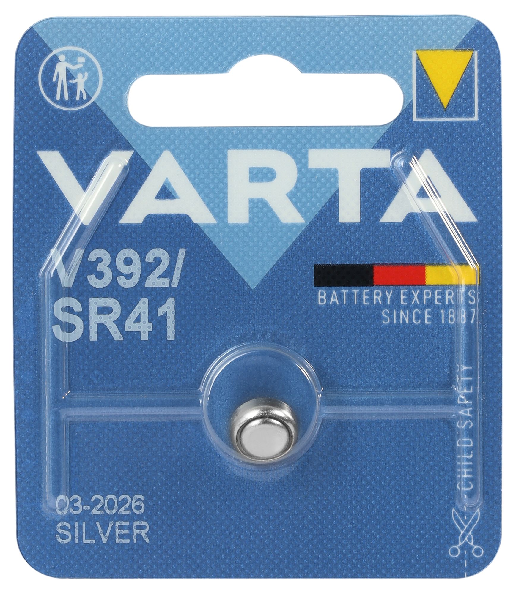 Marke: Varta Typ: Knopfzellen Batterie Material: Silberoxid Spannung: 1,55 V Anwendungen: Uhren, Taschenrechnern, Spielzeugen, Fernbedienungen oder Taschenlampen Verpackungsinhalt: 1 StückEntsorgungshinweis.pdf