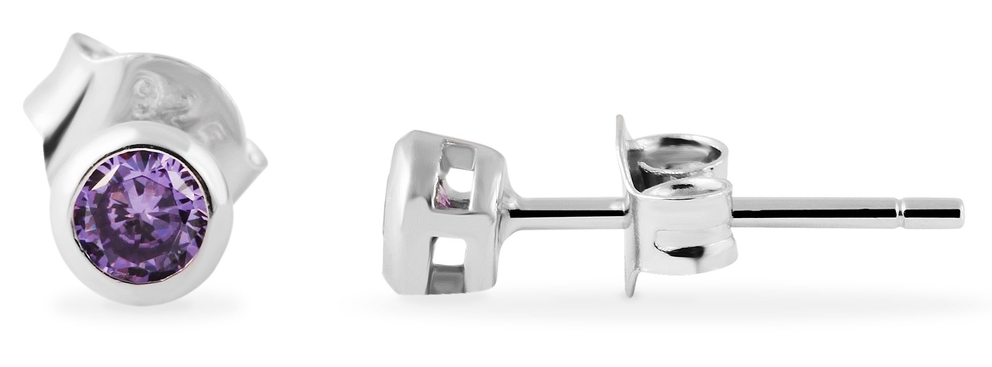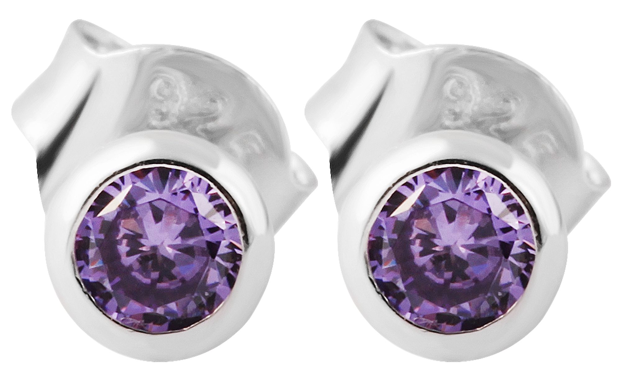 Produktinformationen ""Velia" 925/- Echt Silber Kinder-/ Ohrstecker, lila Zirkoniastein, rhodiniert"