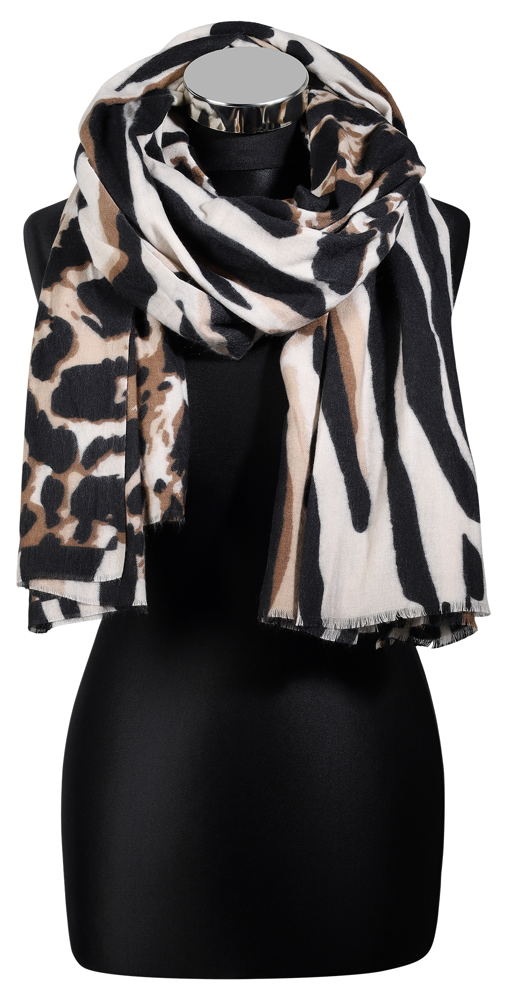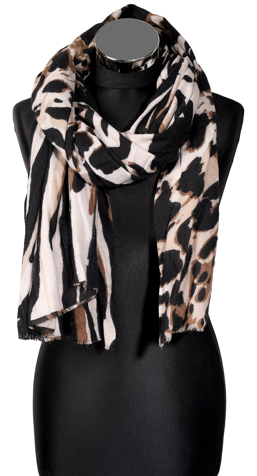 Produktinformationen "Winterschal Animal-Print schwarz/ beige , 100% Viskose, VE 4"