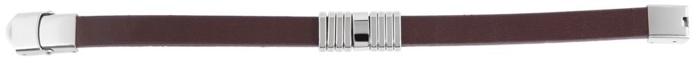 Das braune Echtlederarmband der Marke Akzent besteht aus einem 1,3 cm breiten schlichten Lederriemen. Mittig sind acht schmale silberfarbene Edelstahlelemente an das Lederband angebracht, die von einem etwas breiteren Stahlelement getrennt werden. Öffnen und schließen lässt sich das moderne Schmuckarmband mit einem silberfarbenen Hakenverschluss, der ebenfalls aus Edelstahl gefertigt ist. Die Gesamtlänge des Bandes beträgt 21 cm und die Stärke 7 mm.
