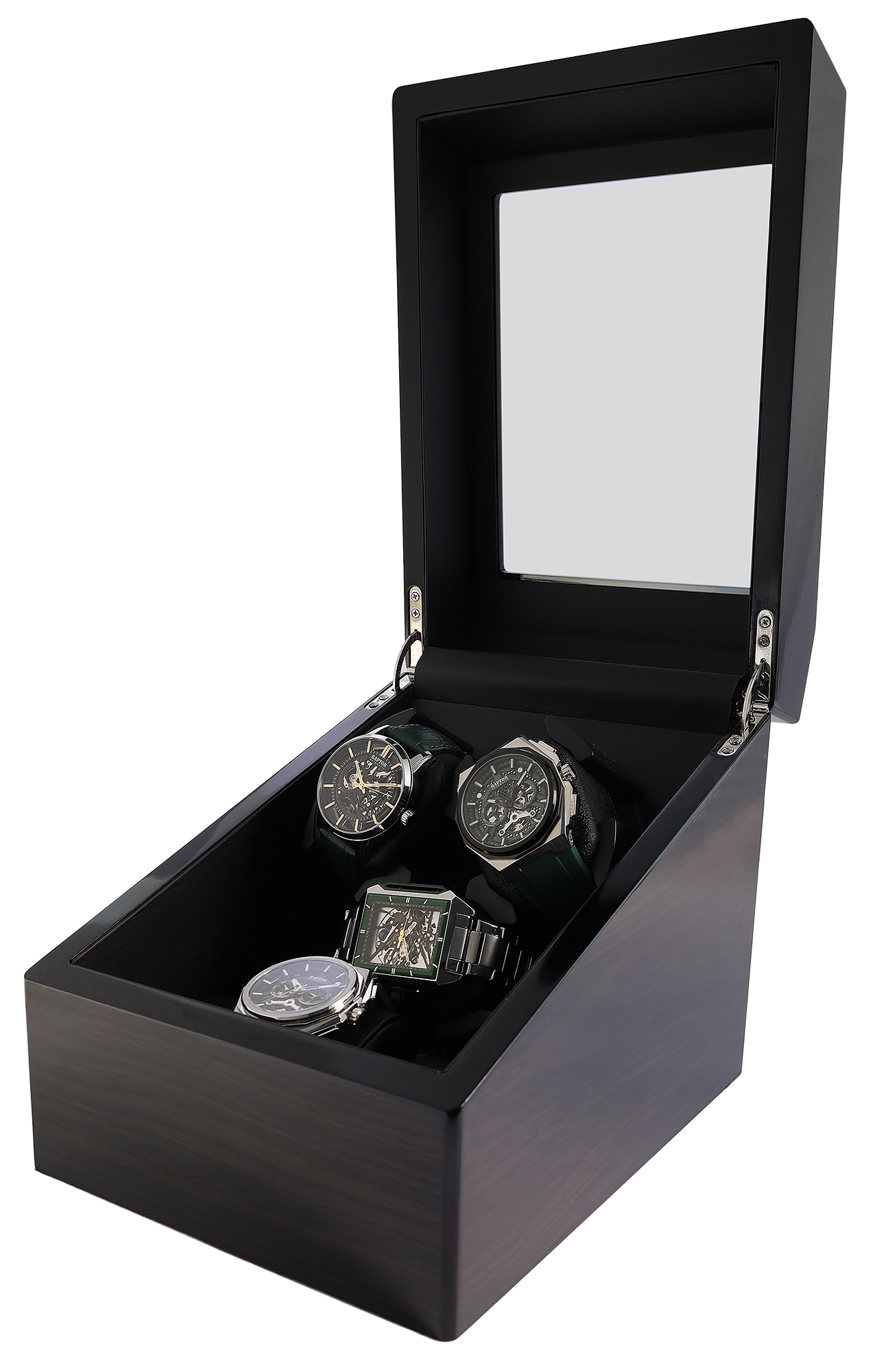Dieser großzügige Uhrenbeweger ist die perfekte Lösung für Sammler. Er kombiniert professionelle Aufzugstechnik für drei Automatikuhren mit zusätzlichem Stauraum für drei weitere Zeitmesser. Das Gehäuse in hochwertiger Holz-Optik macht ihn zu einem stilvollen Blickfang in jedem Regal oder auf dem Sideboard.