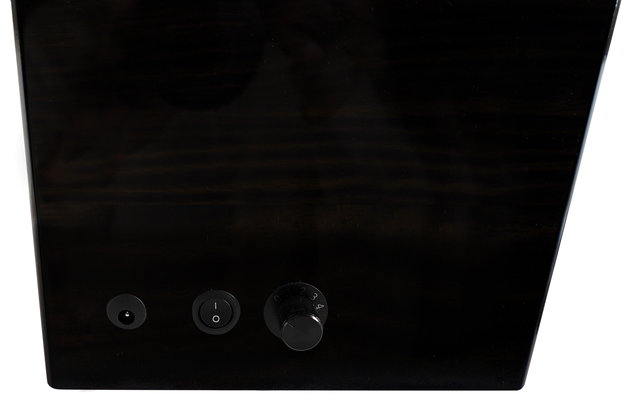 Das hochwertige Kunststoffgehäuse mit einem täuschend echten Holz-Finish und den Maßen 28 x 24 x 20 cm bietet imposante Präsenz ohne zu viel Platz einzunehmen.