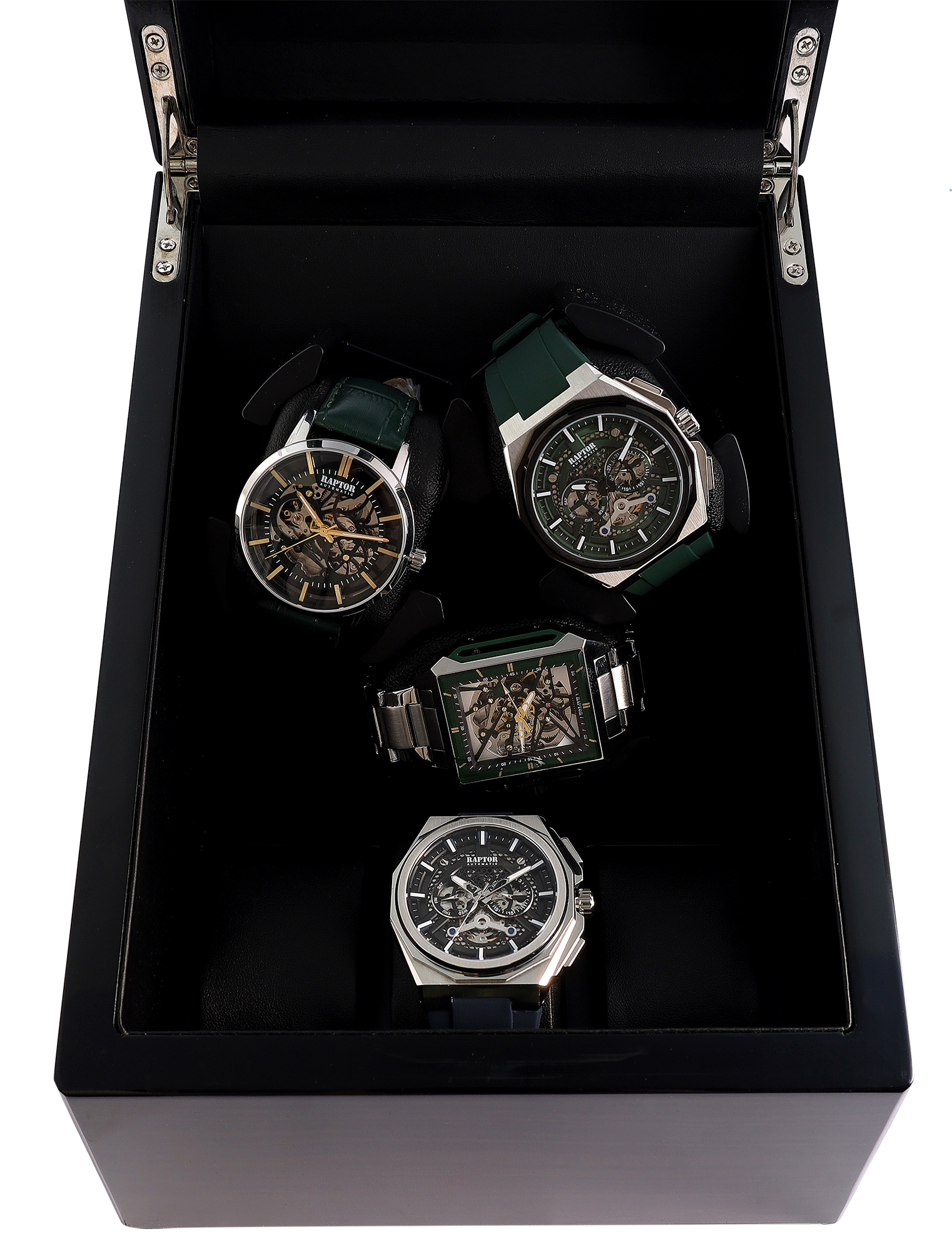 Eine durchsichtige Kunststoffscheibe schützt Ihre Sammlung vor äußeren Einflüssen und gewährt jederzeit freien Blick auf die Zifferblätter.